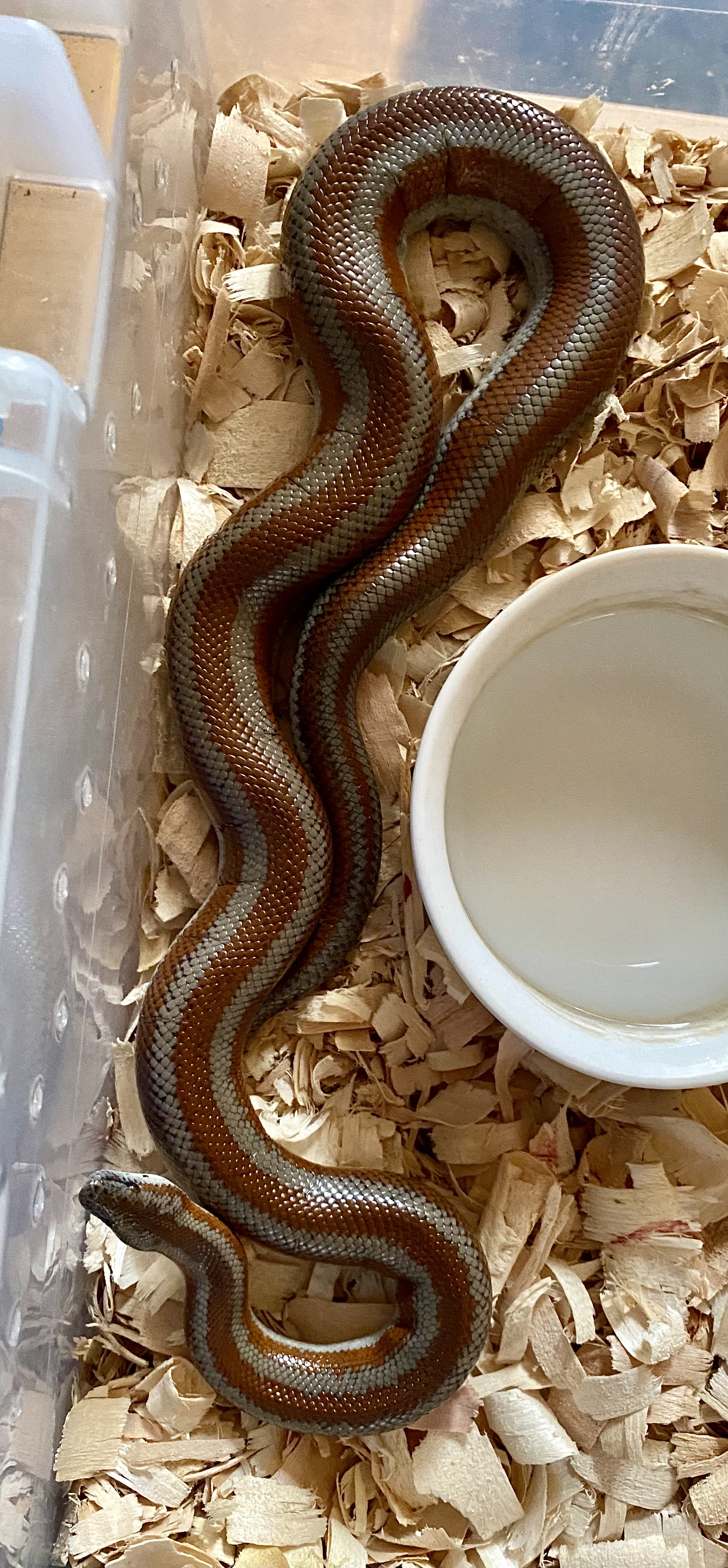I’m no expert in breeding them. I just cohabbed them for about 2 months after brumation ended, so I’m not sure when she’s due. Probably within the next month…I think. She stopped eating a couple of months ago, so I’m glad I fattened her up sufficiently. She’s about 450g and he’s about 160g. Don’t know why he’s small. I don’t remember that kind of size dimorphism with the Coastals I had in the past.