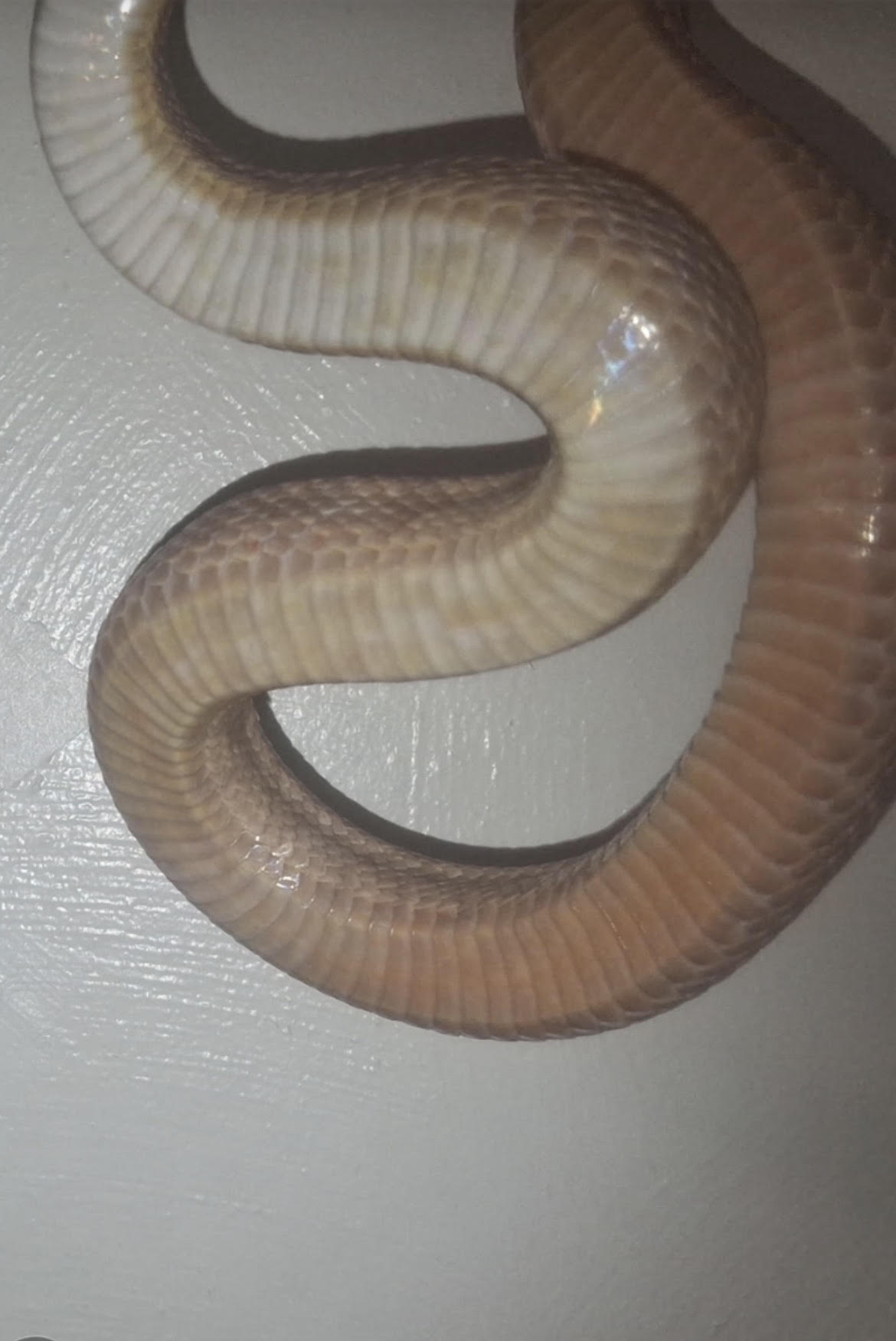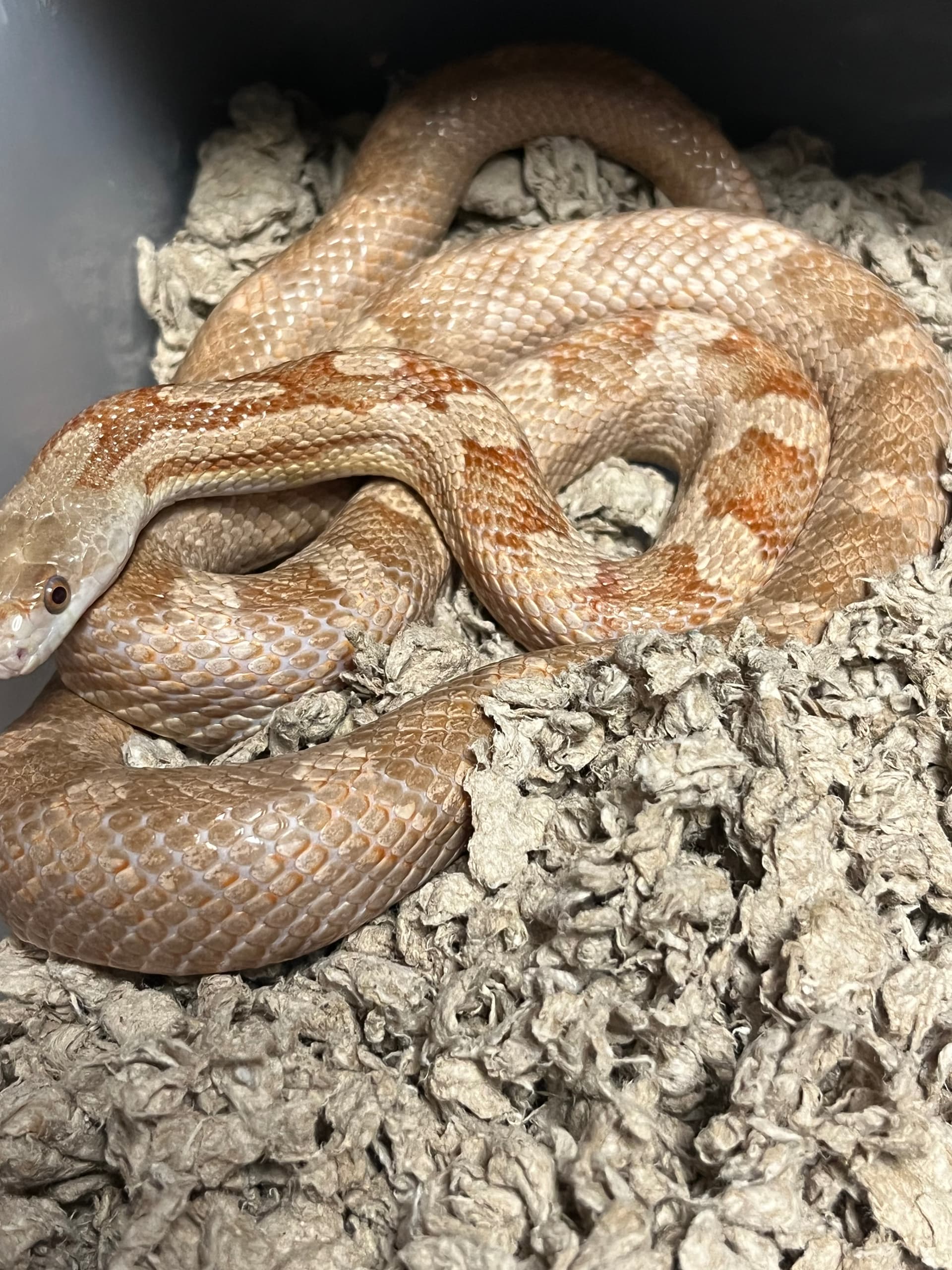 So there are checkers but they’re very light. Weird. That doesn’t go with her topside in terms of corn snake possibilities.