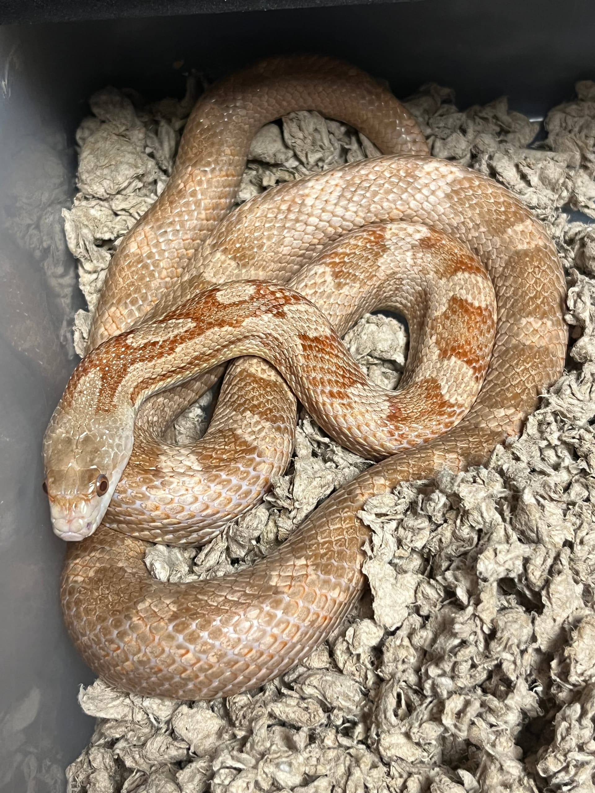 Yes, I’ve bred and kept corn snakes for 6 years now so when i went to pick up this girl i knew she definitely wasn’t a strawberry lavender but now looking at her head shape and her fierce attitude it is giving some sort of rat snake I’m just lost as to what kind.