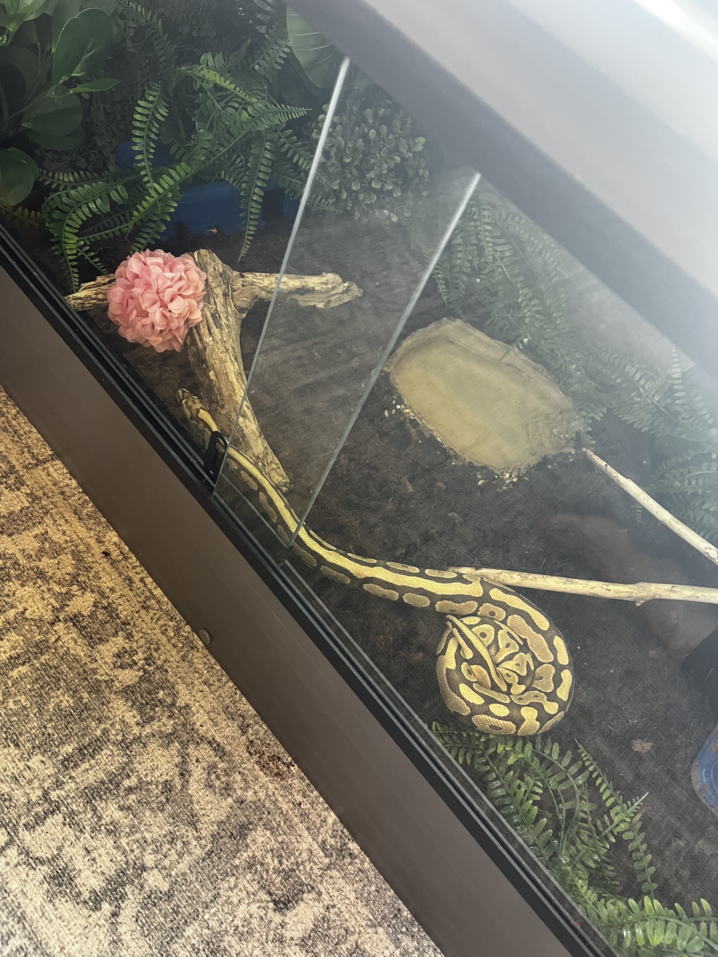 Bought a year old Mojave Spotnose mid August 2025 and I can’t get her to eat. We bought her expecting her to be the size of our palm (based on photo) and she ended up being 2x bigger than that. We recently upgraded her terrarium which is now 48”x24” 24”. We have a heat mat on a thermostat. I recently added a heat projector to help with ambient air temp. Humidity has been kept 60-80. She has 2 of the same hides. We have stopped taking her out over the last 2 weeks to try and decrease her stress. We have tried mice and 2 different sized rats. I have tried feeding her at night, during the day, lights off, lights on. I’ve tried dipping the head of the rats in chicken stock, vanilla, I’ve brained the rat, I’ve always heated the rat with a hair dryer. Used forceps as well as just placed it on a container lid and left it overnight. I’ve even tried covering her terrarium with a blanket overnight to make her feel more secure.