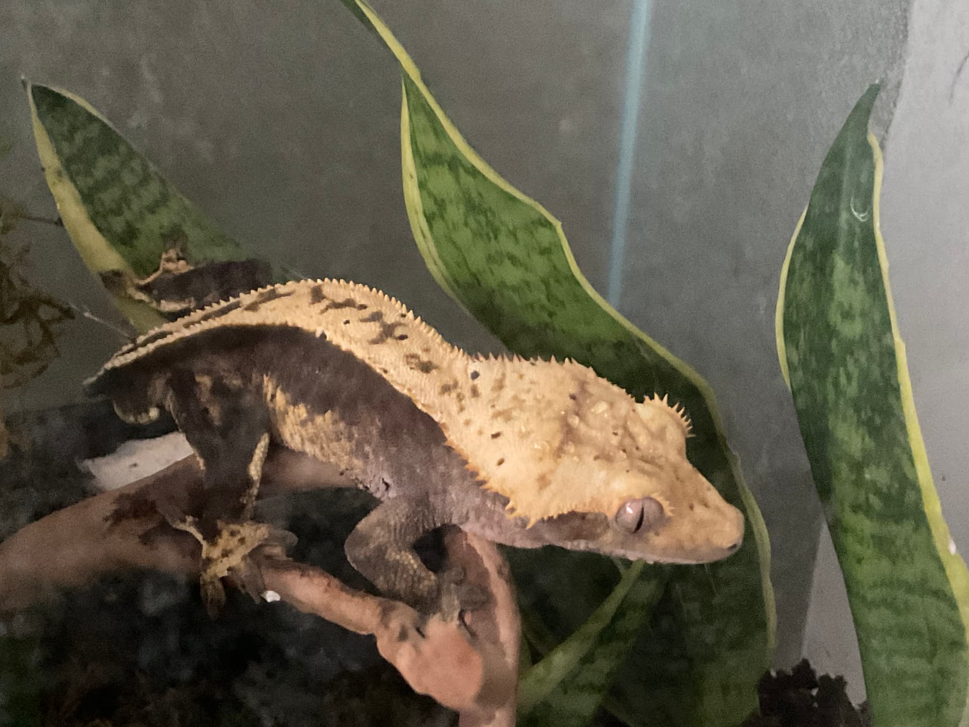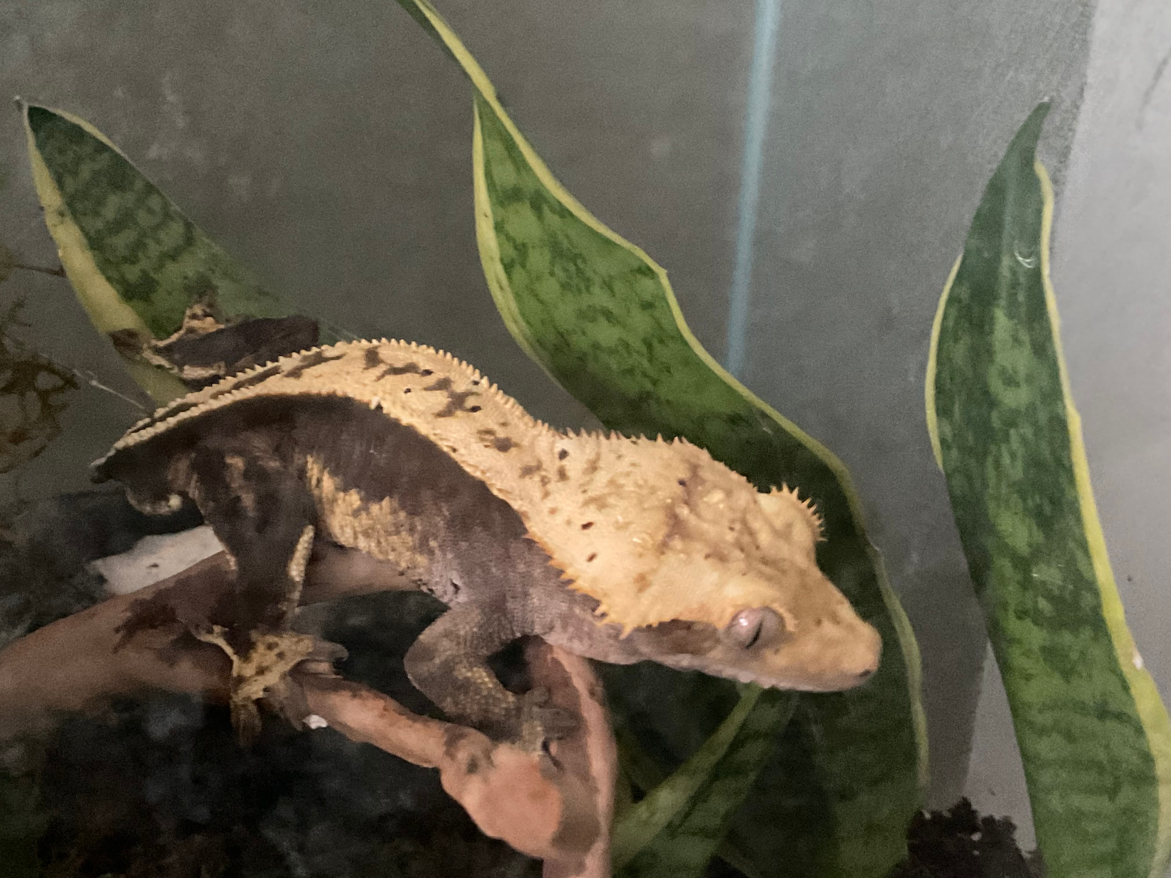 I did hold him in in the morning after I woke up and he was fine moving around my hand calmly but it’s just odd how he is still awake. I have never ever seen him awake during the day especially since he is just sitting their looking around I would assume if he is awake he would at least explore his vivaria. He is also breathing quit heavenly more than I have seen him Is their not enough humidity maybe to much?? The temperature is fine around 70f