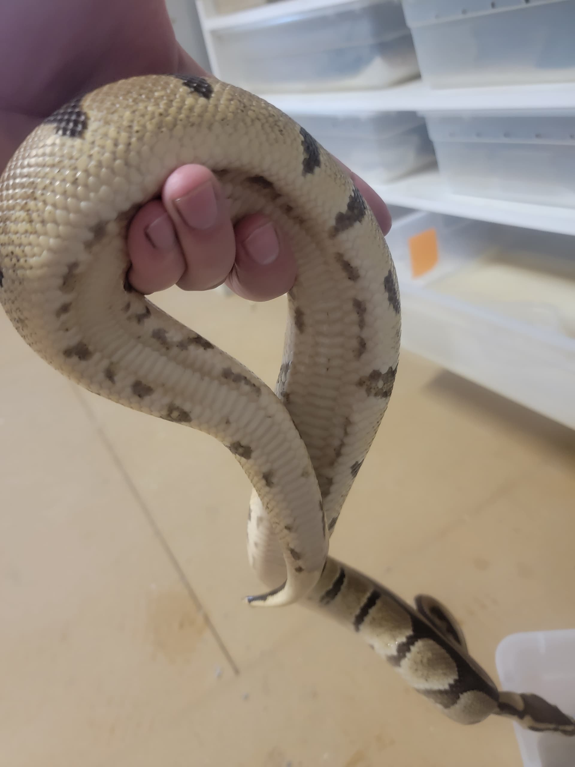 Oh shes dark like that in person why we juat assumed normal but was curious about her head stamp. Were keeping the black one to see what happens if she produces more black normal looking snakes.