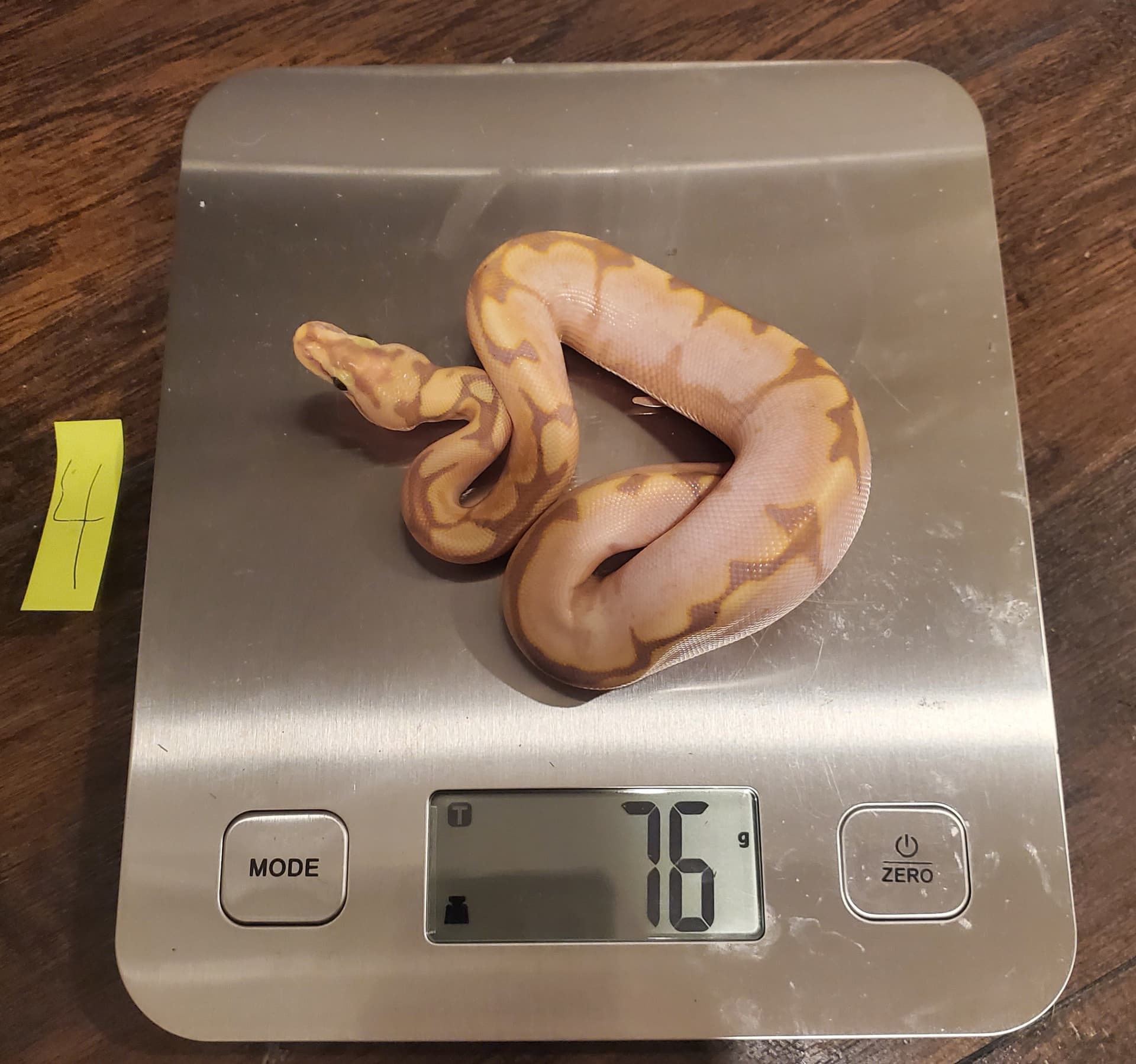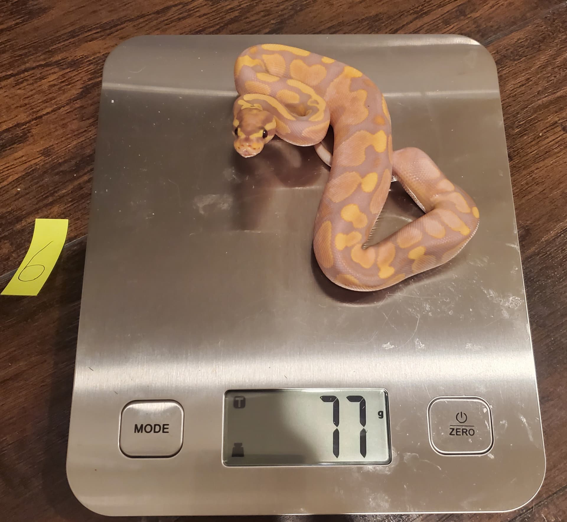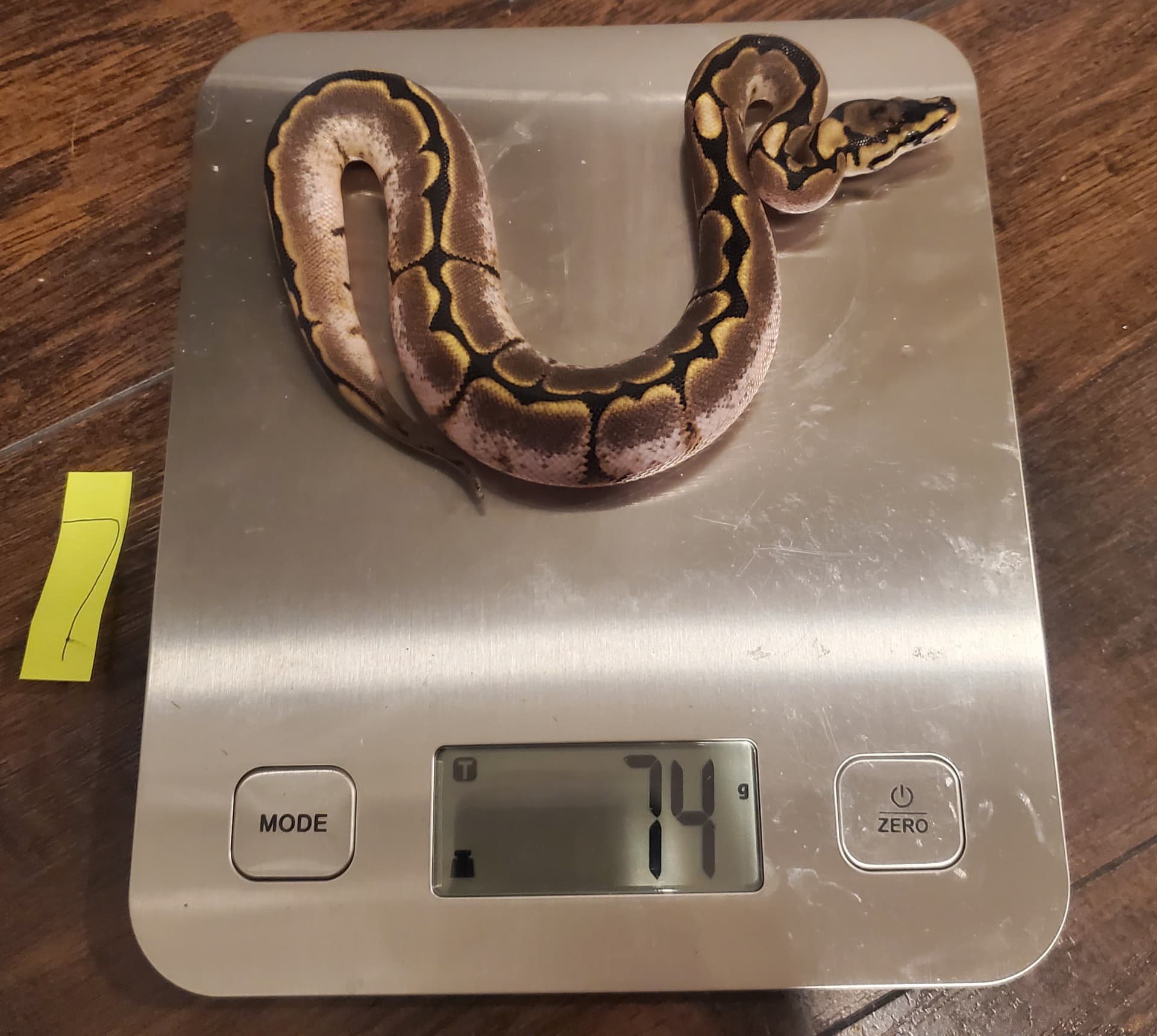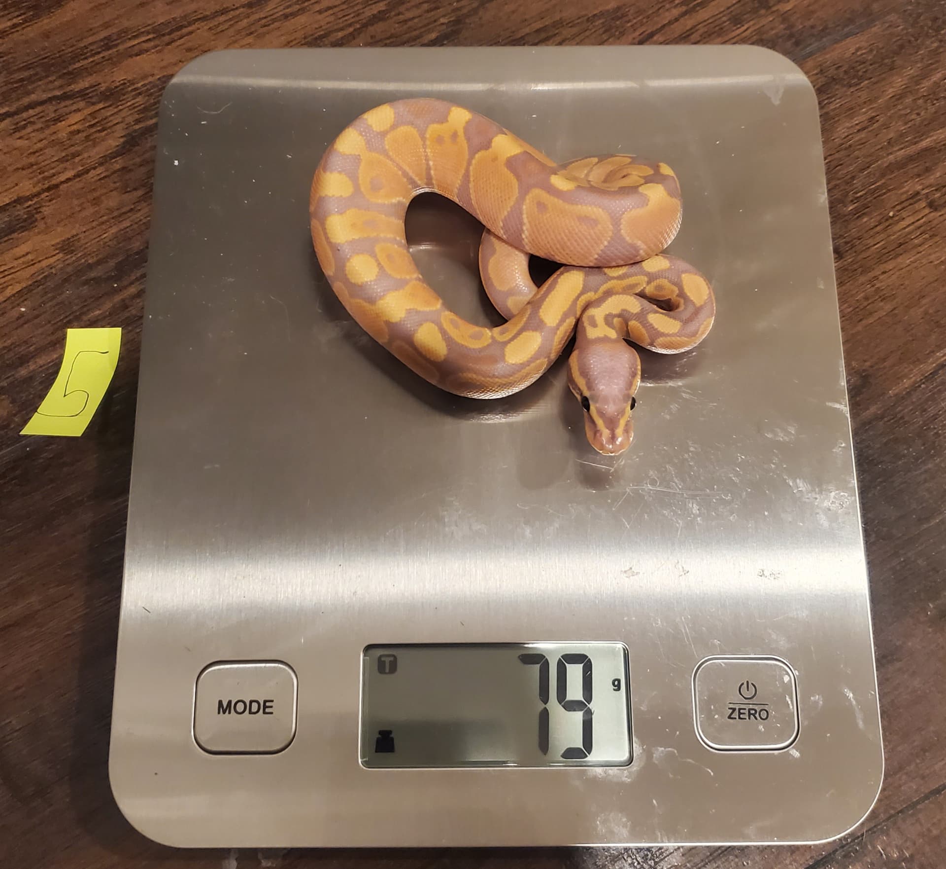Everyone has shed and been put into their own tubs. I have them all labeled 1-7 for now to keep them straight for feedings. I bought some frozen rat pinkies a couple days ago. I warmed up 3 today since I feed all of the snakes Wednesday nights. 2 of them ate (labeled 4 and 5). I’ll try again with the others this weekend. About to make a big order from rodentpro to stock up on food for all my snakes. They have a sale going right now. It’s way cheaper than buying from the pet store. I only bought some from them this time to compare sizes in person to figure out what to feed my babies. Hopefully everyone eats soon. Their dad has been refusing for a couple weeks, which is rare for him. His weight is good so not super worried about him. Mom is going into blue, but she still ate tonight. She’s gained half the weight back she lost from having them.