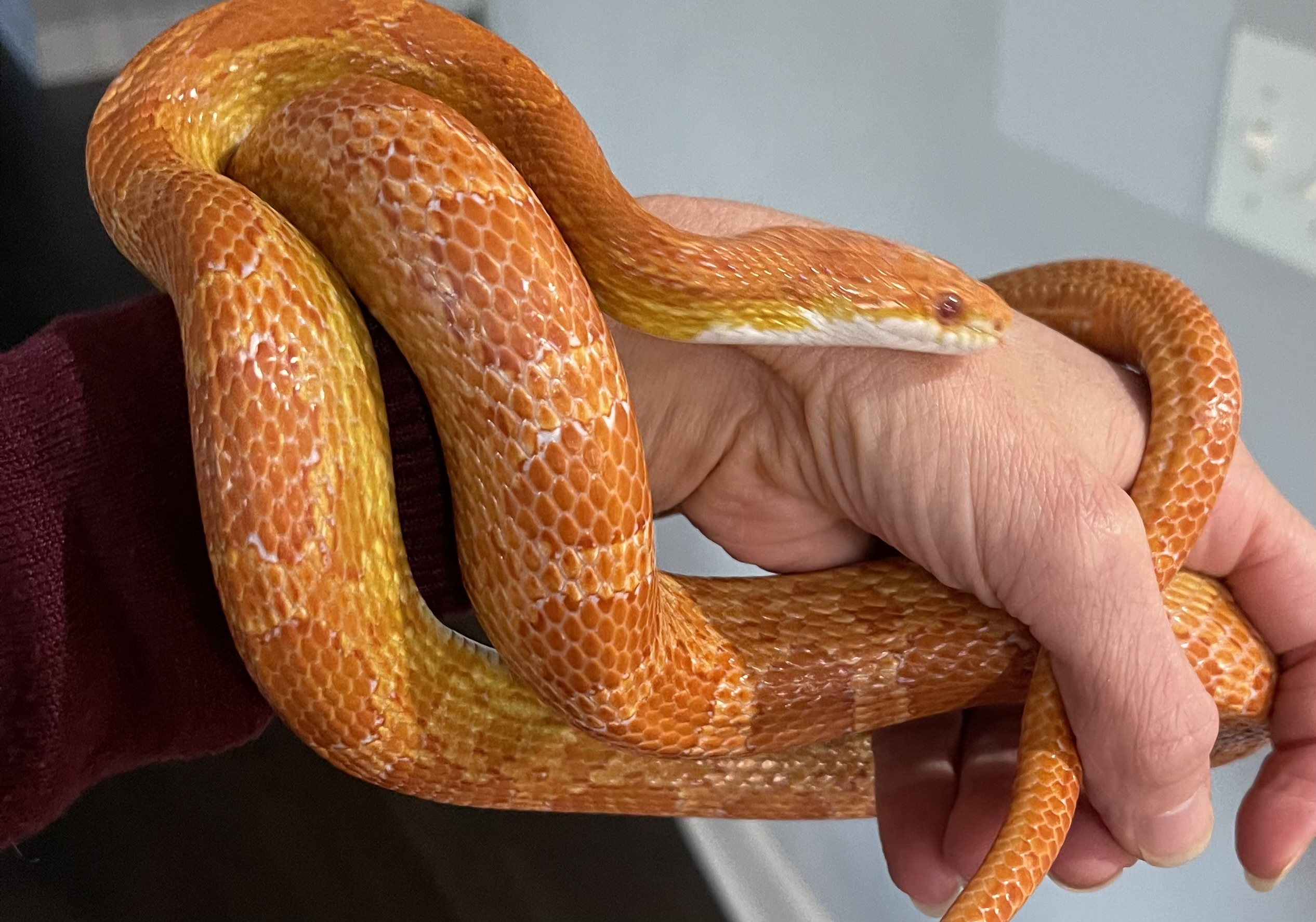 @noodlehaus is right. Buf + Amel = orange. This is my orange corn, although he’s het palmetto, too, which makes his colors a bit more intense than I see in most oranges. Ian’s Vivarium has other good photos.