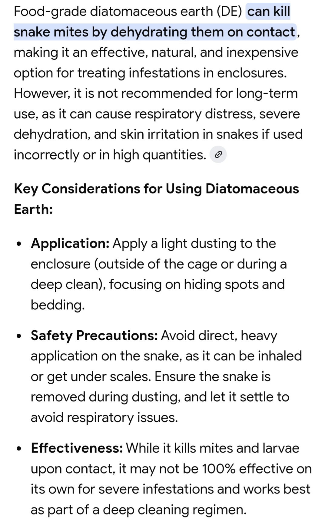 Out of the collection, I only had mites on 2 snakes. But I cleaned EVERYTHING to prevent cross contamination, I soaked AND cleaned under EVERY scale of each individual snake.