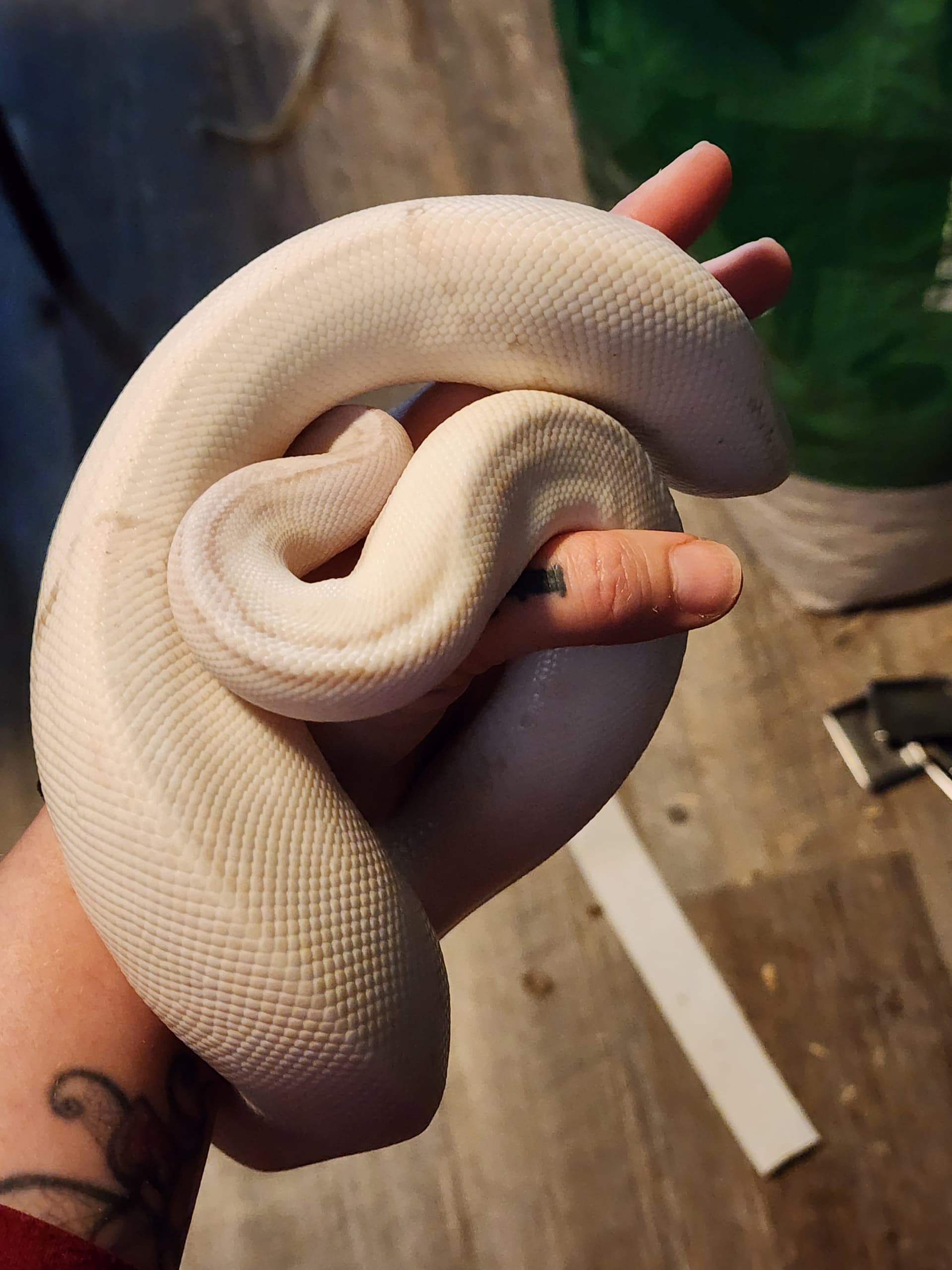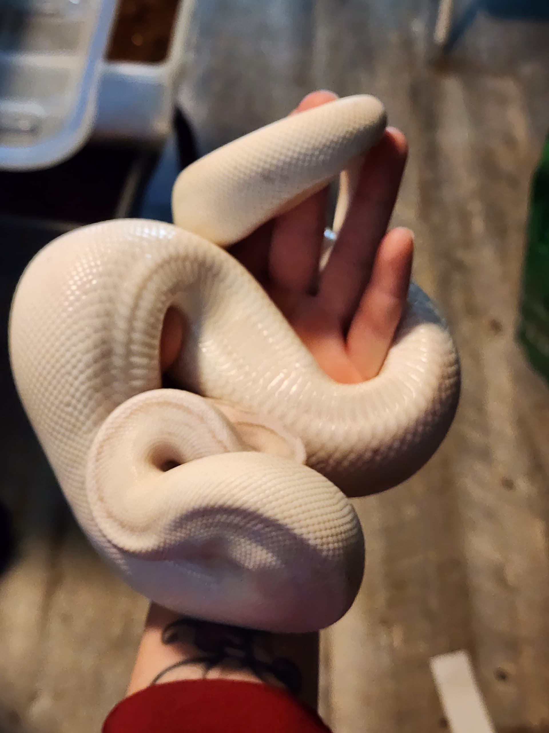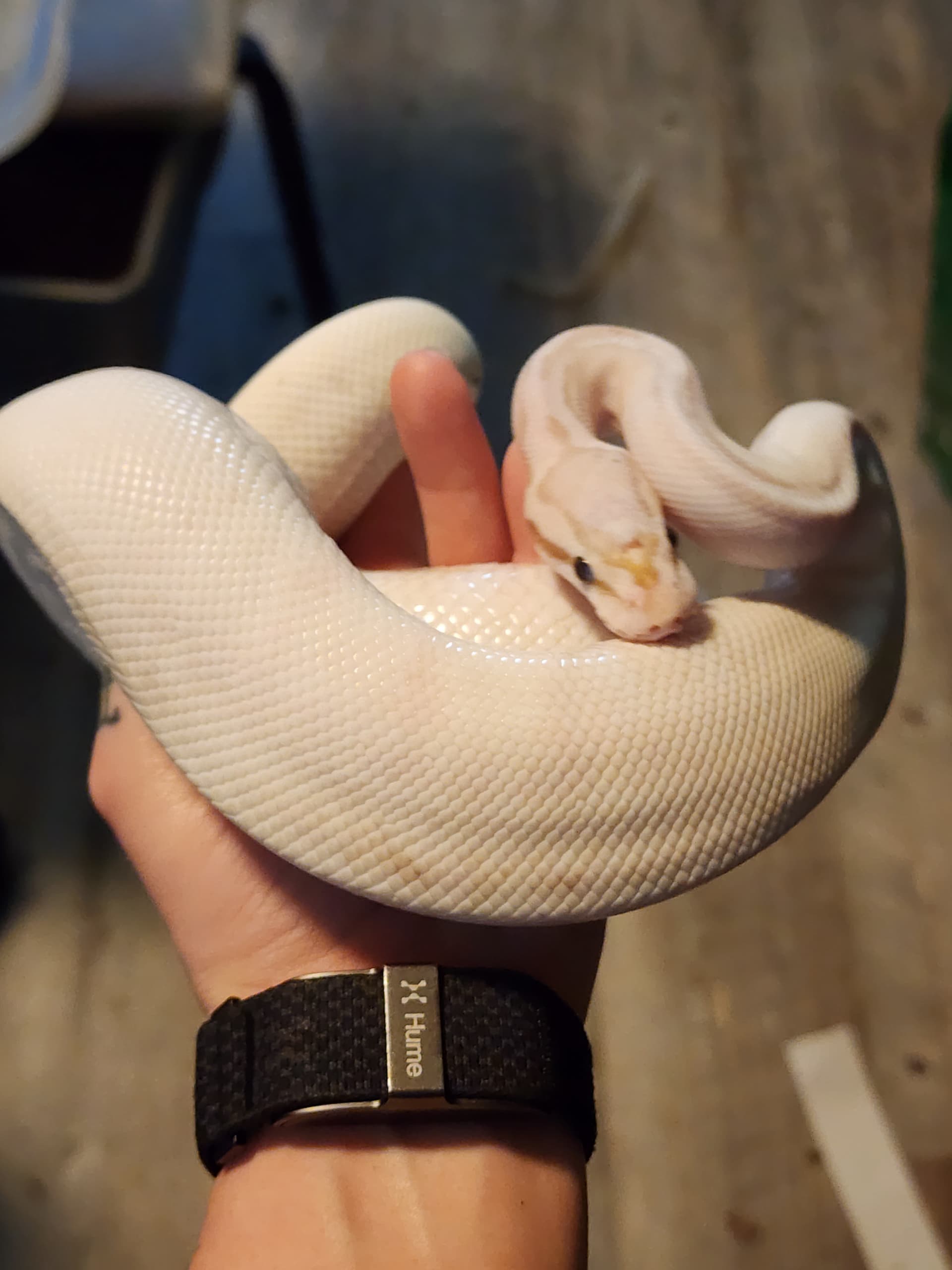 “Black and White Overnight” indeed. I knew that this girl would fade out over time, especially being a Pastel Banana Pied, but imagine my shock when I lifted her hide and found a dirty white snake in the place of my yellow snake. She was deep in blue, so i thought that maybe it was just a rough shed and that’s why she looked white. It did take her longer to shed out than usual, but here she is, still white. Thought it would neat to share. Also, has anyone done any line breeding with snakes thay both are showing the polygenic axanthicism? I’ve done a little reading around, but not nearly enough. Thanks for checking this out!