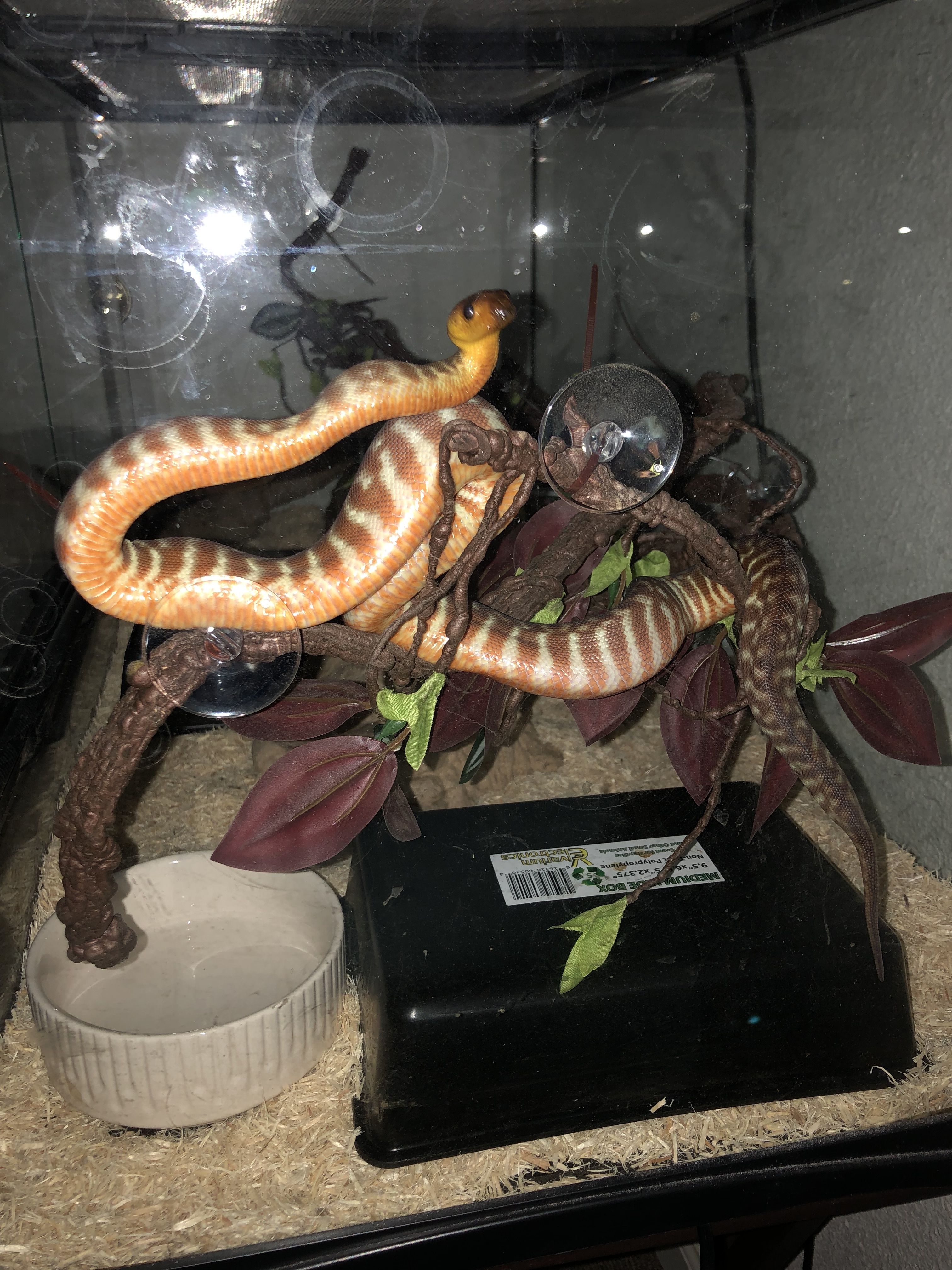 Ooo beautiful sneks!! Yeah i was stuck on the fence either a stimson or spotted. I dont have a TON of space, but i think i have plenty of room for a spotted setup. I live in an apartment so deff needs to be a smaller snake lol.