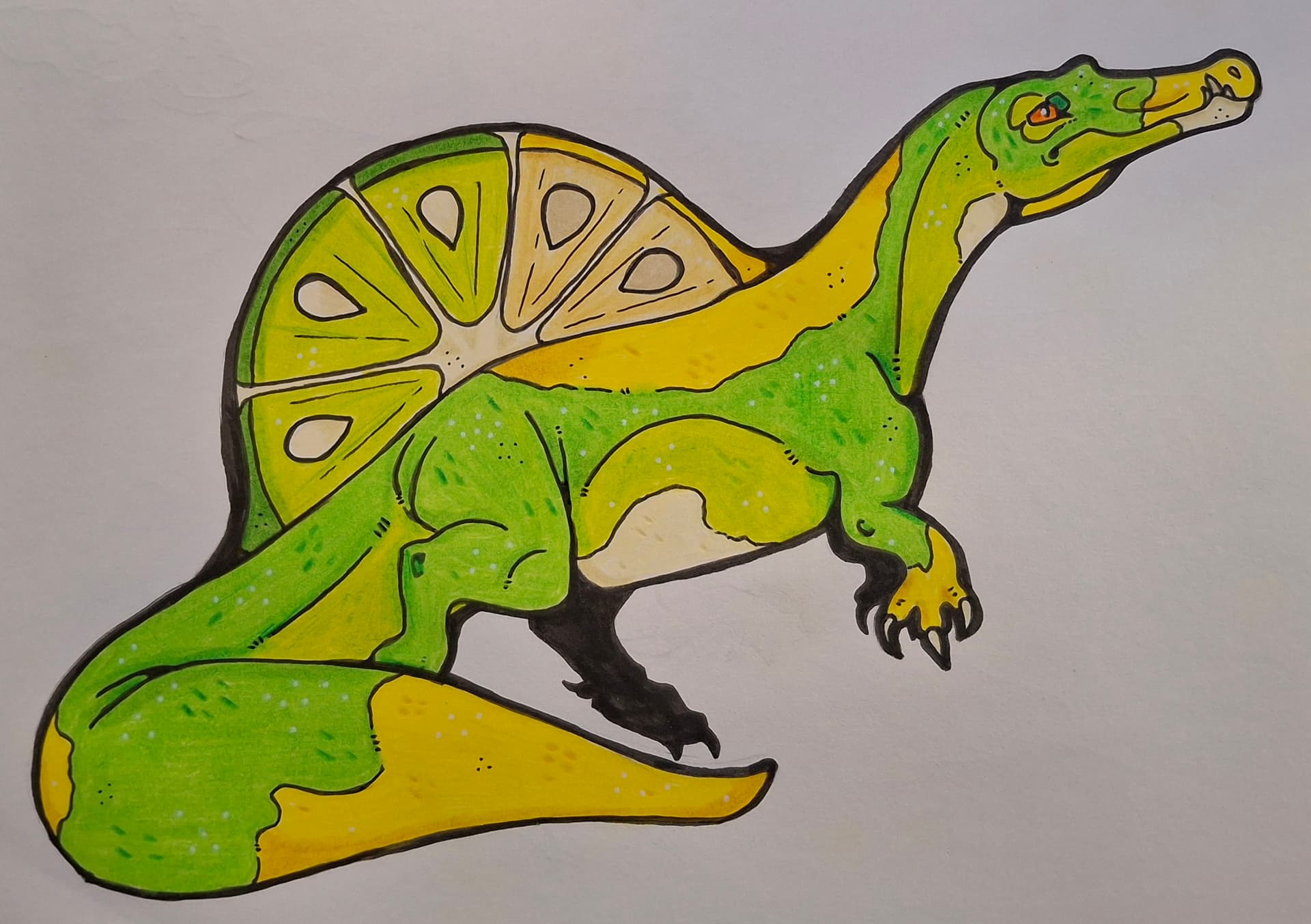 Instead of doing an even split (although a split down the middle chimera design would SLAP), I made this a chimera/paradox dude, mostly lime with lemon paradoxing for spice (totally not because I only have 3 yellow-skewed colored pencils hahaha)