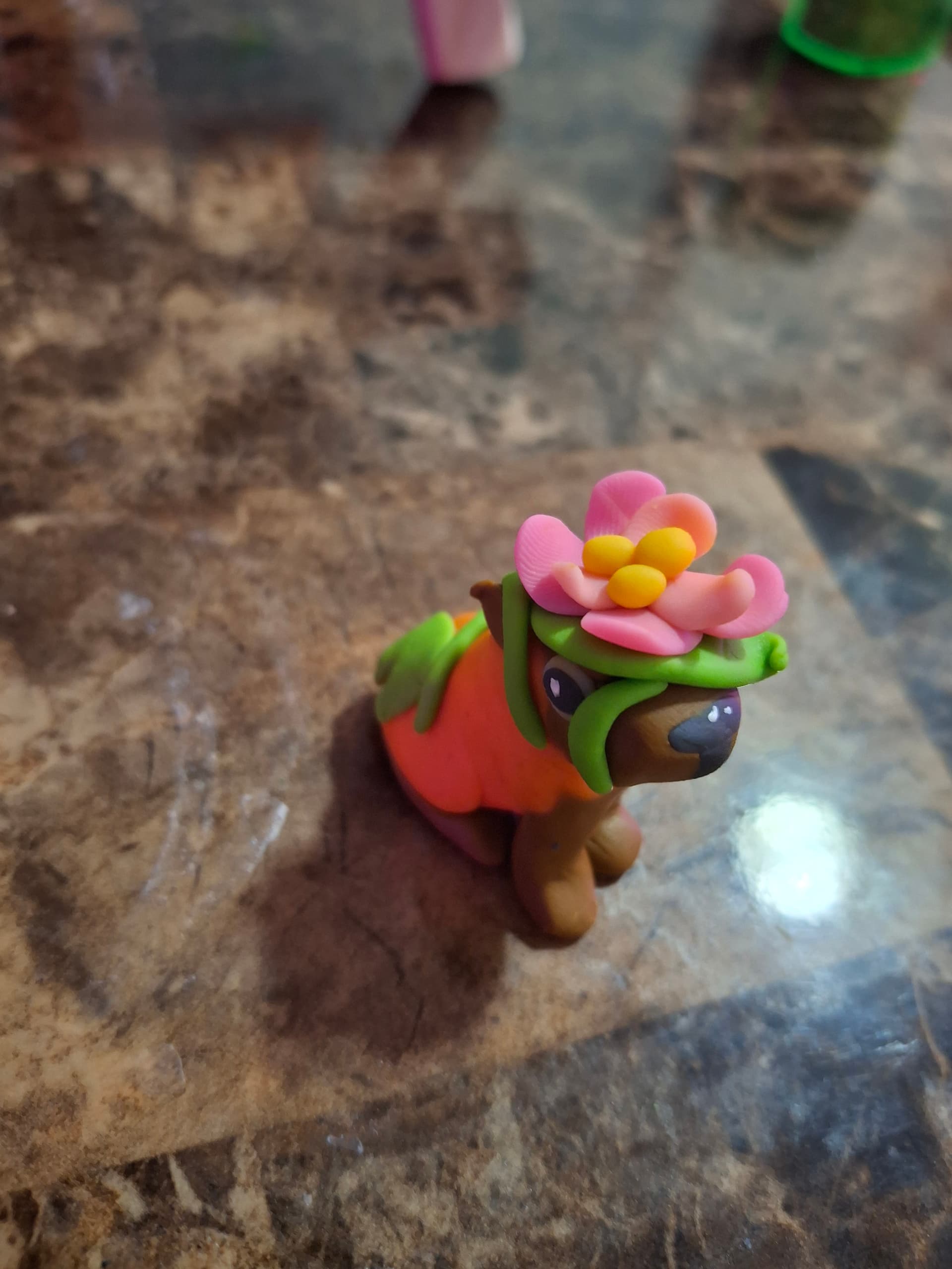 Haven’t managed any herps yet, but here is a tiny clay version of my dog (complete with a real tail puff of her fur), and a capybara with a lillypad hat!