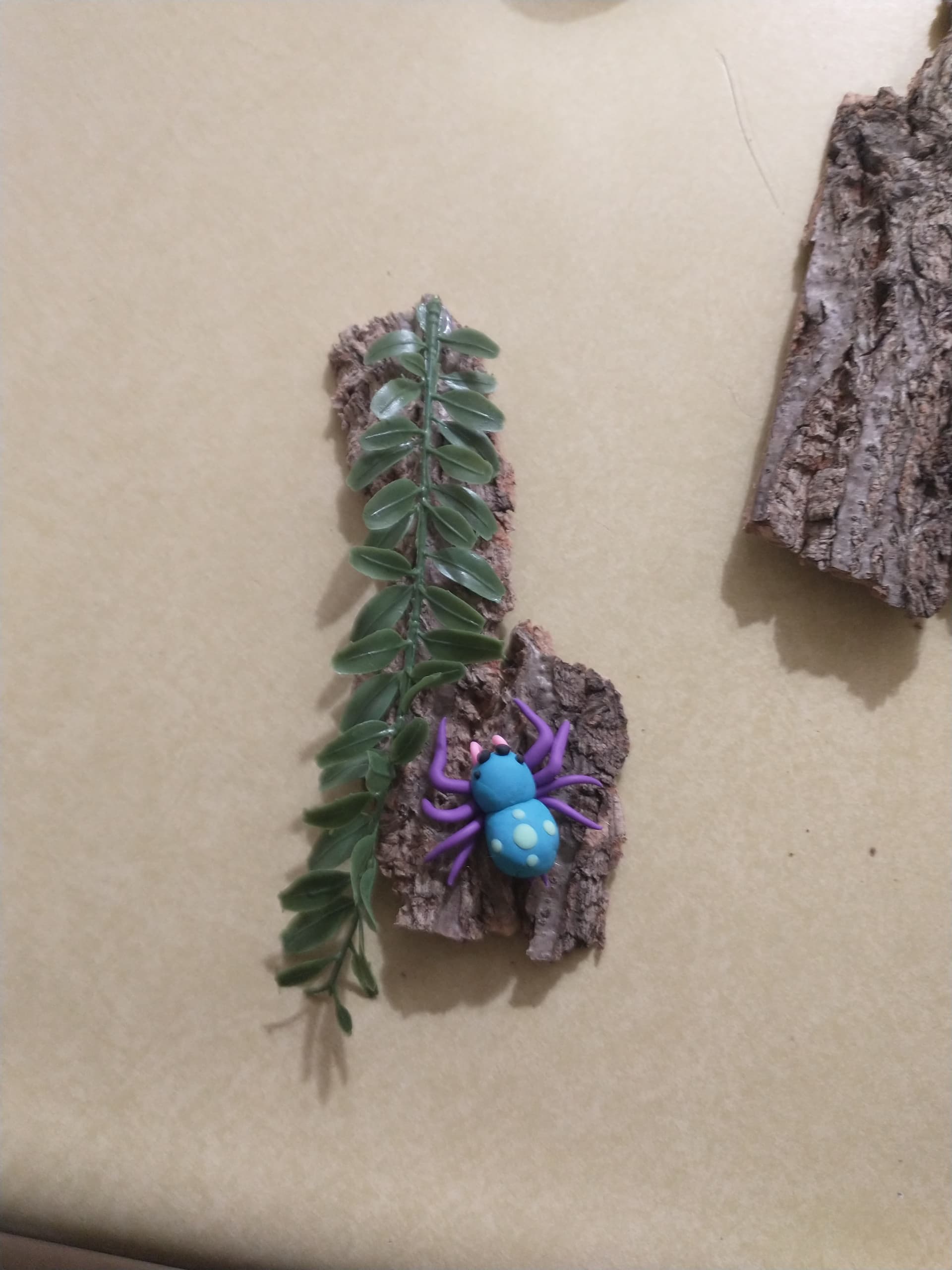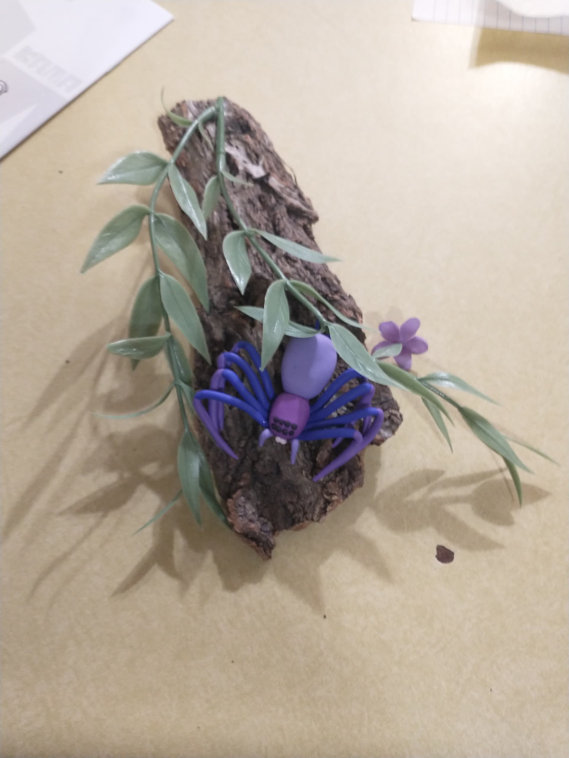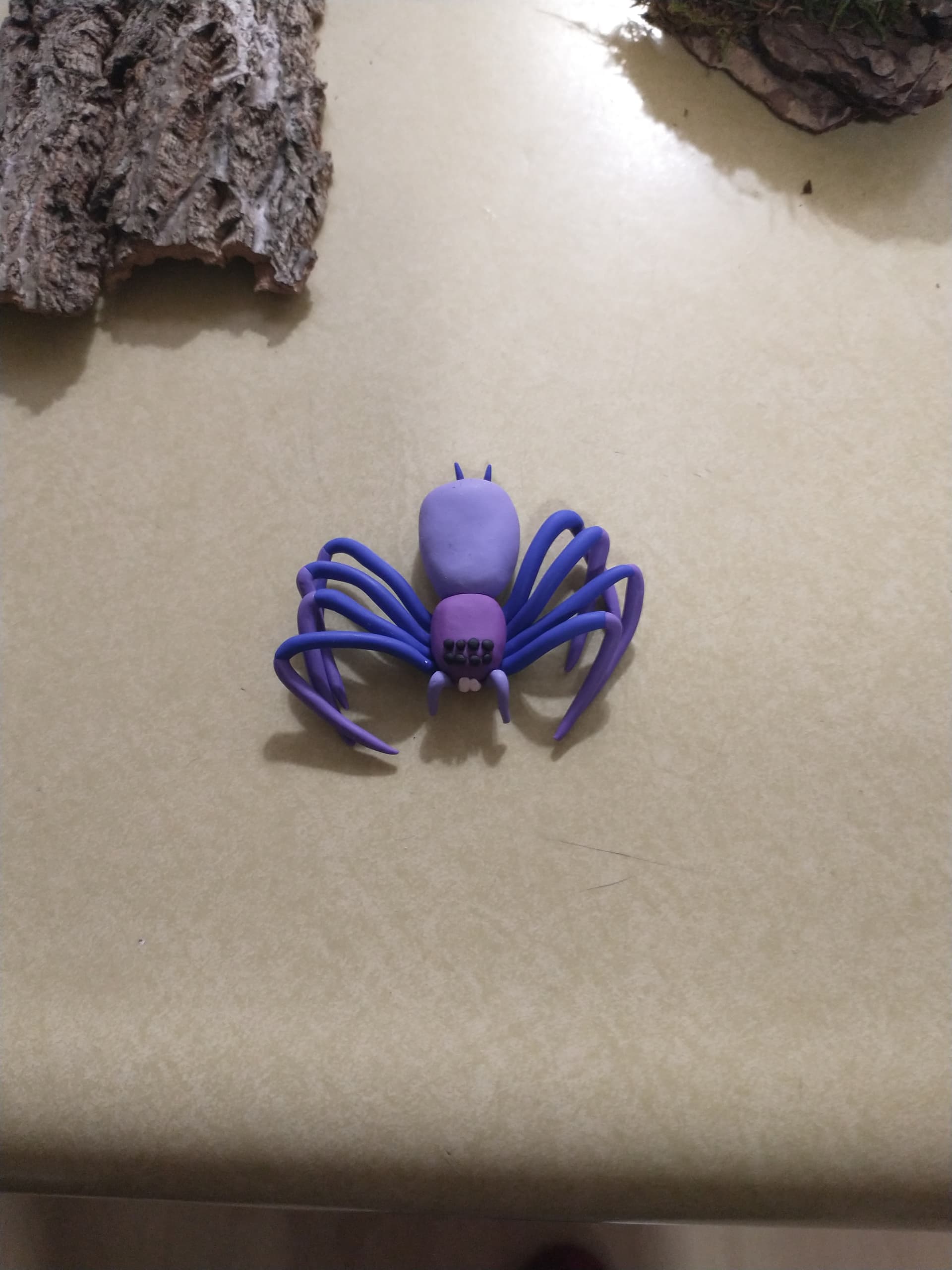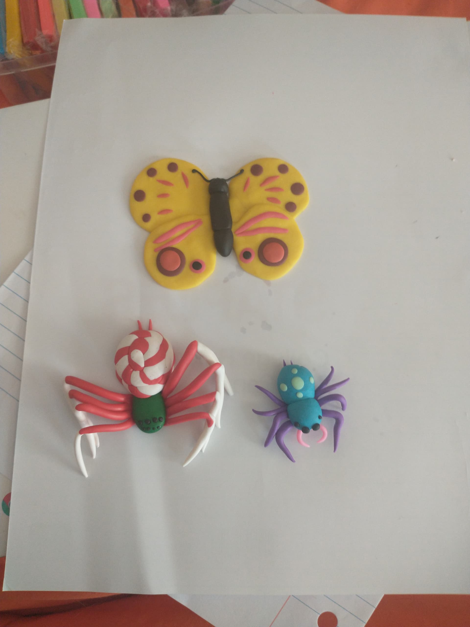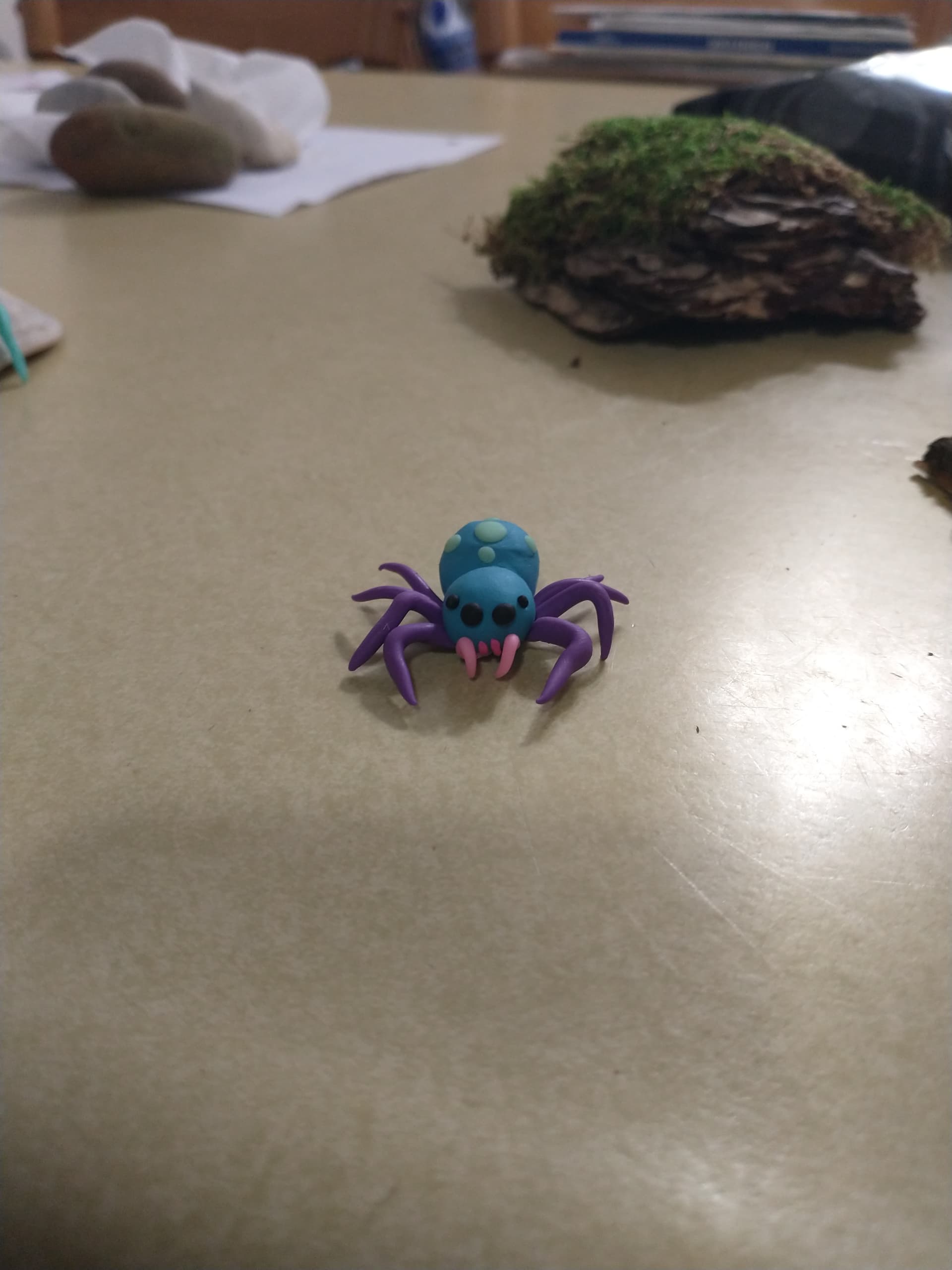 You all inspired me. I got myself some modelling clay and spent this morning making these little guys. Initially I wanted to make a “Christmas spider,” hence the huntsman with the peppermint butt. Then came the teal and purple jumping spider. Then my housemate loves butterflies, so I decided to try my hand at a butterfly for her.