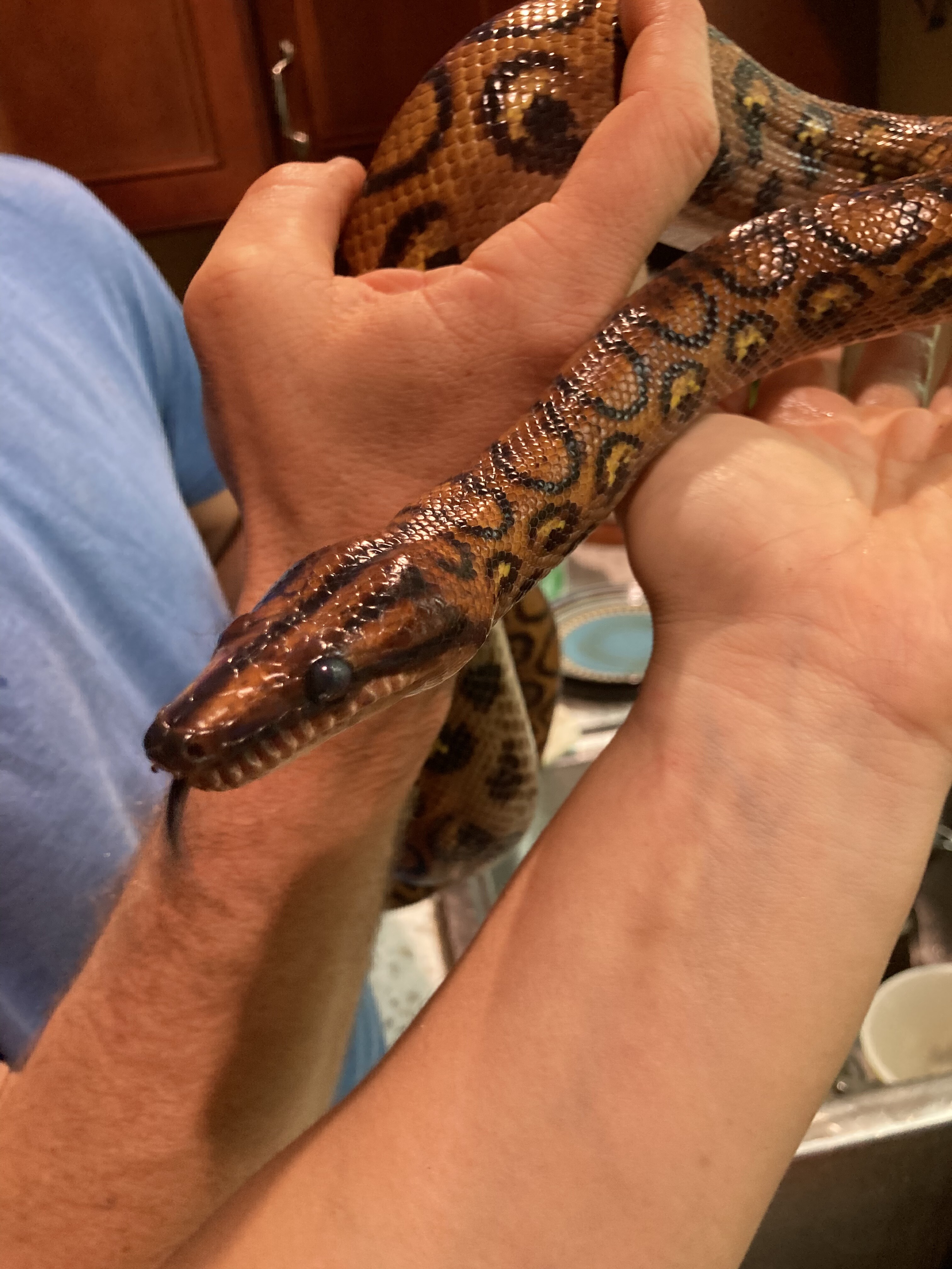 He was given to me by a friend who couldn’t take care of him anymore. He was just a family pet for me and my kids. He was 6’ 6" long and around 9 lbs. He was very tame and liked being out with the family.
