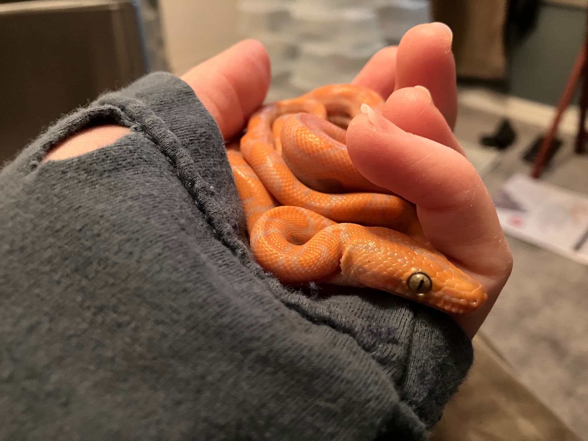 For pound per pound, he was one of the strongest boas I have ever owned. He would squeeze your arm so hard just to hold on it would cut off your circulation, and your arm would turn purple and get numb.