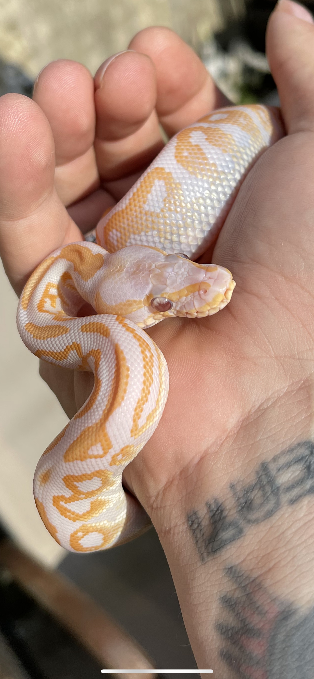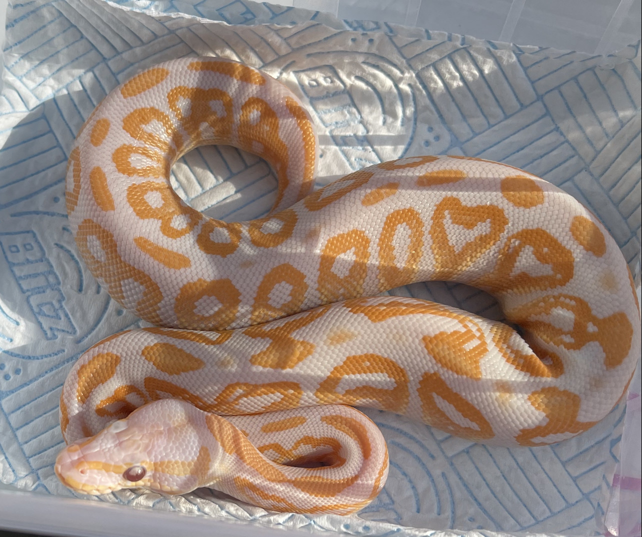 Meet Ariel my new female leopard albino. Was going to give all my snakes with red eyes demon names but decided to stick with angelic names for them all