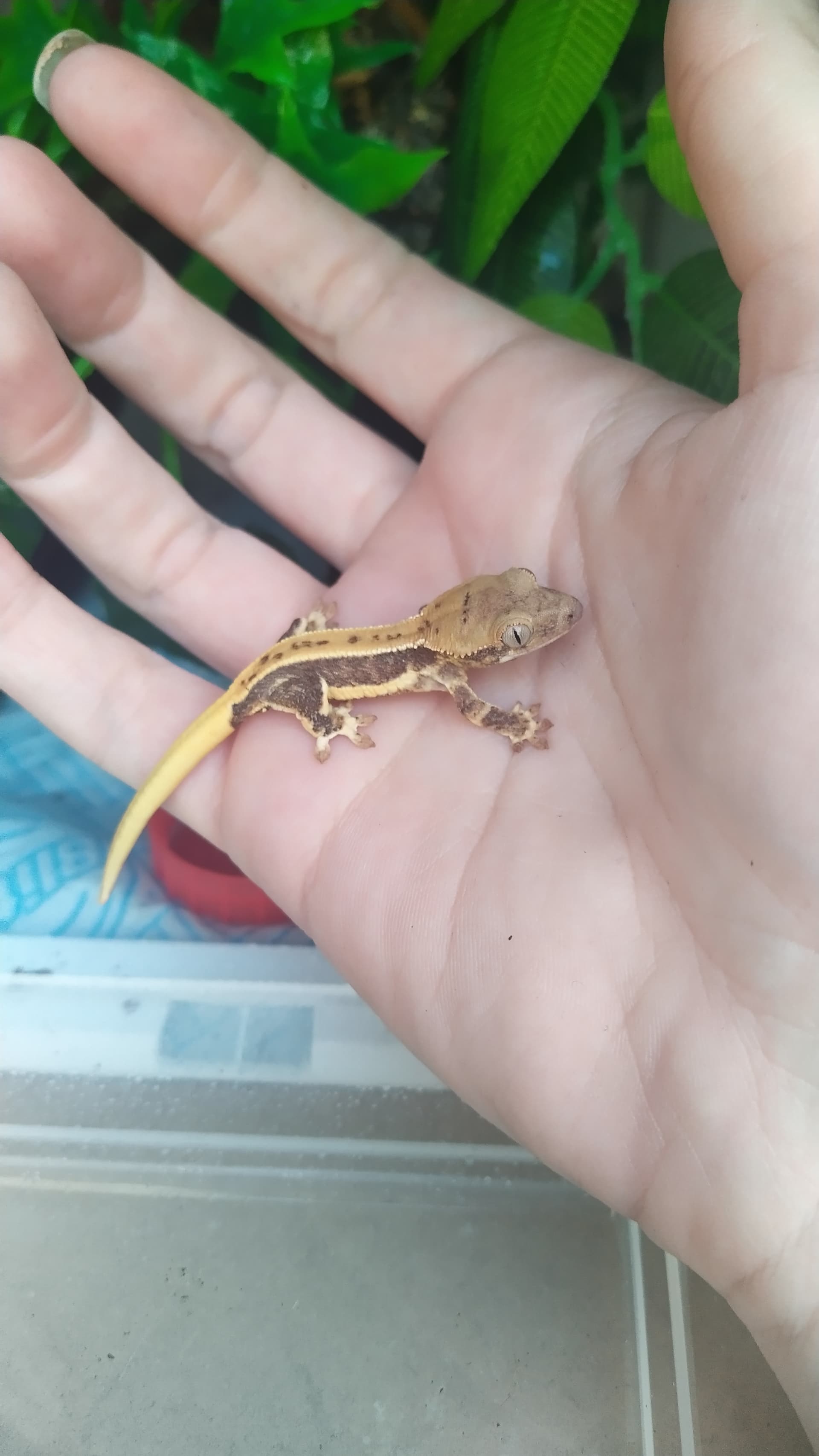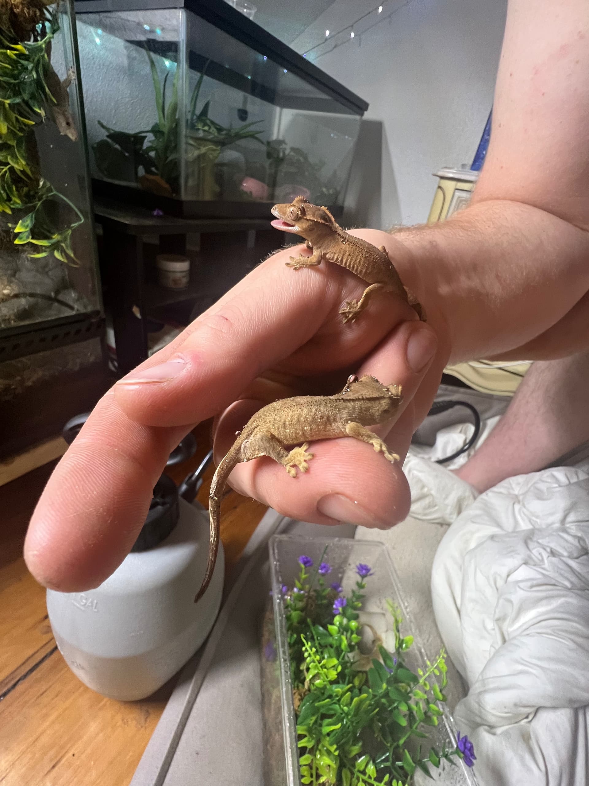 The baby is tiny, probobally about a half inch/centimeter long. It’s very possible that the other one could have hidden in the cork bark, so I’ll go check that real quick now.