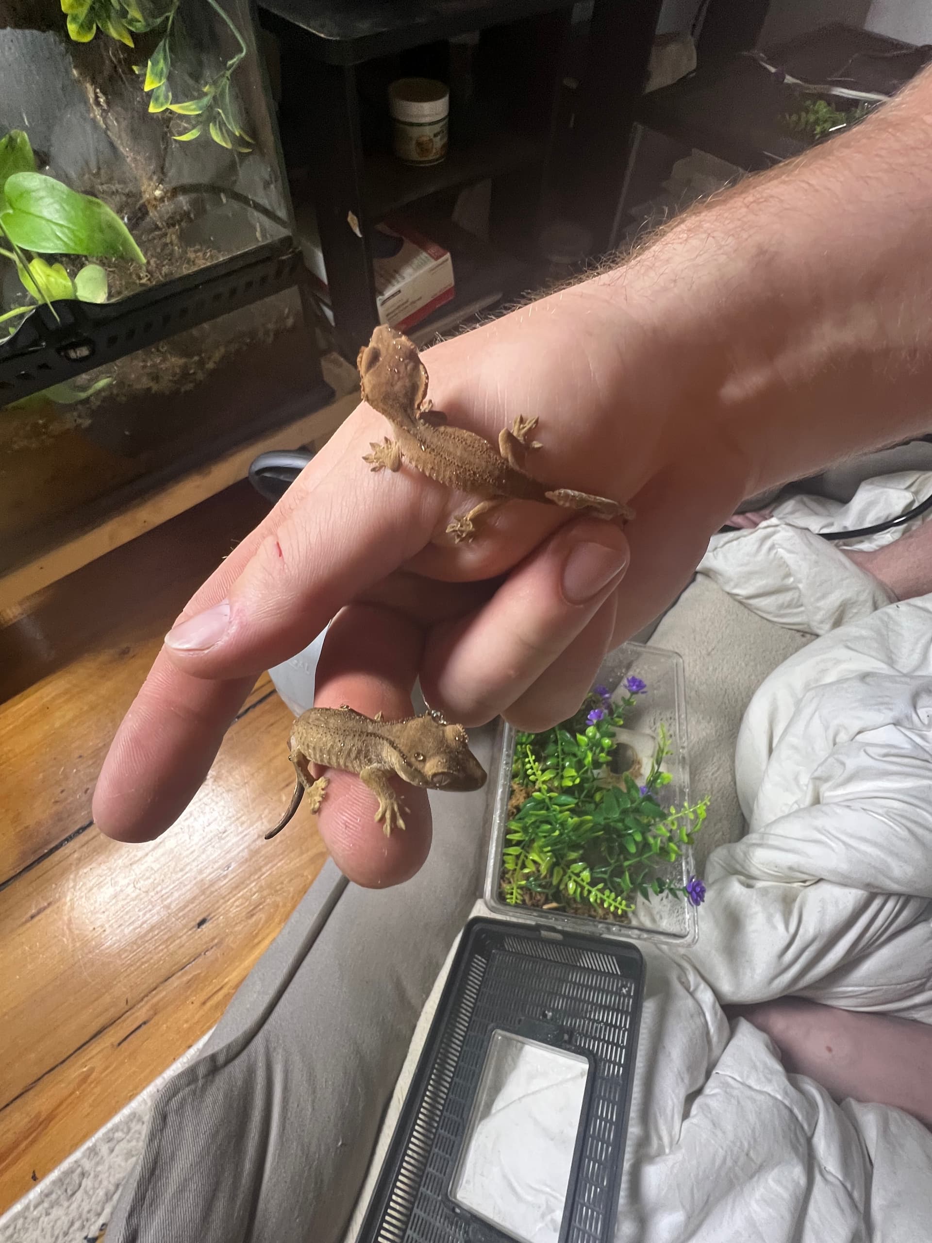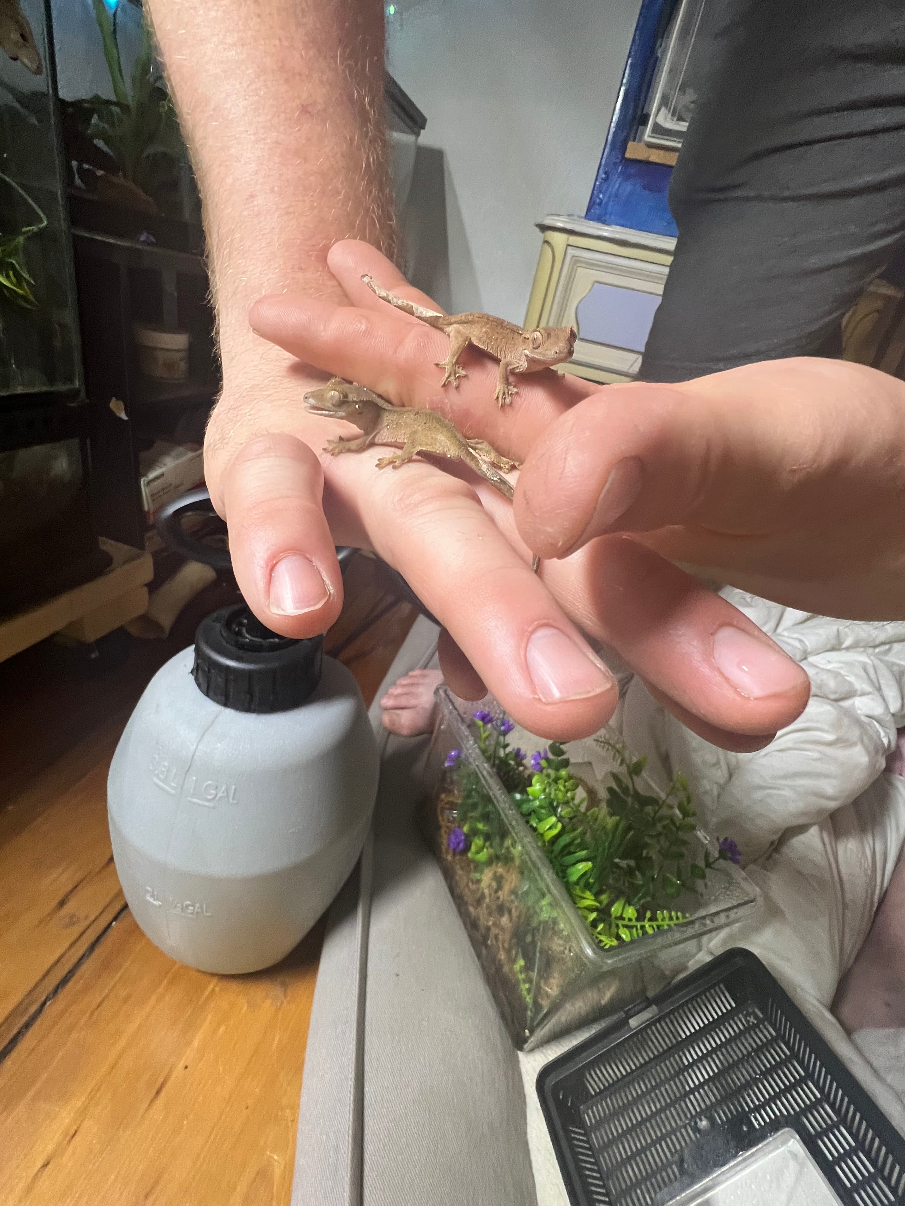 I am super confused right now. Yesterday I found a baby (!) in the adults enclosure. It didn’t have a tail which is understandable and could have happened from multiple reasons. I took it out and set it up in a new enclosure. I figured that there could be another baby in an egg or in the enclosure so I sifted through all of the substrate and took it out little by little looking for eggs. I took all of the substrate out and thoroughly inspected each clump that I took out. I’m confused because I didn’t find any eggs, when I should have found one old shell and one live egg or shell. It was late at night so I might do it again today when I can see better but I highly doubt that I missed any. There is no other medium that the egg could have been laid in except in dried moss in the cork branches, which is way too dry to keep an egg alive.