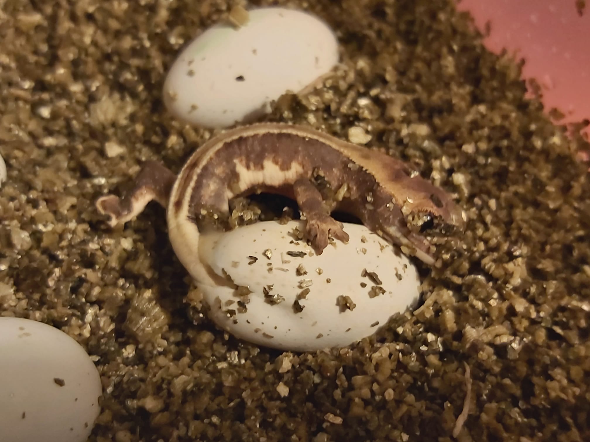 So this just happened right in front of us! Was checking eggs, turned around to check a snake amd then turned back around to see this lilone pop their head out!