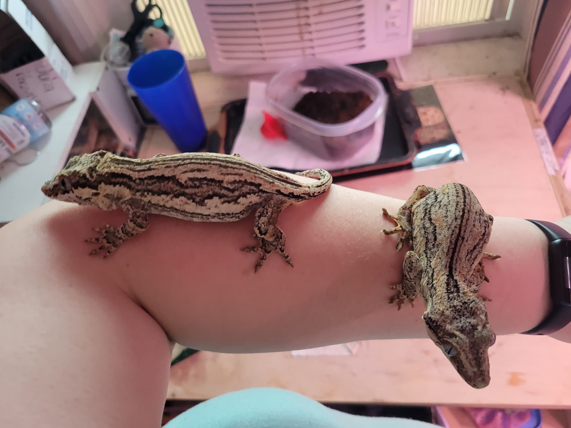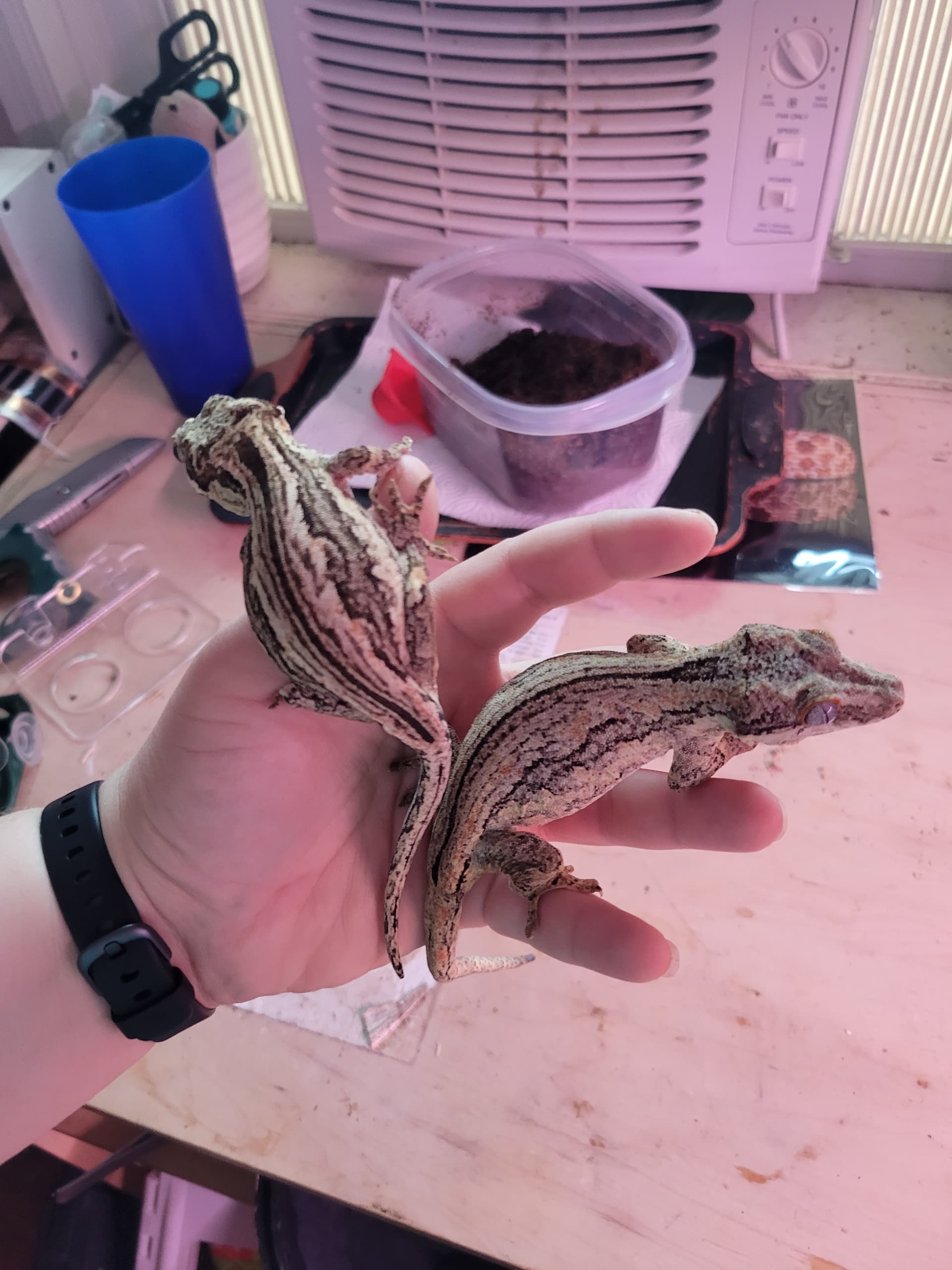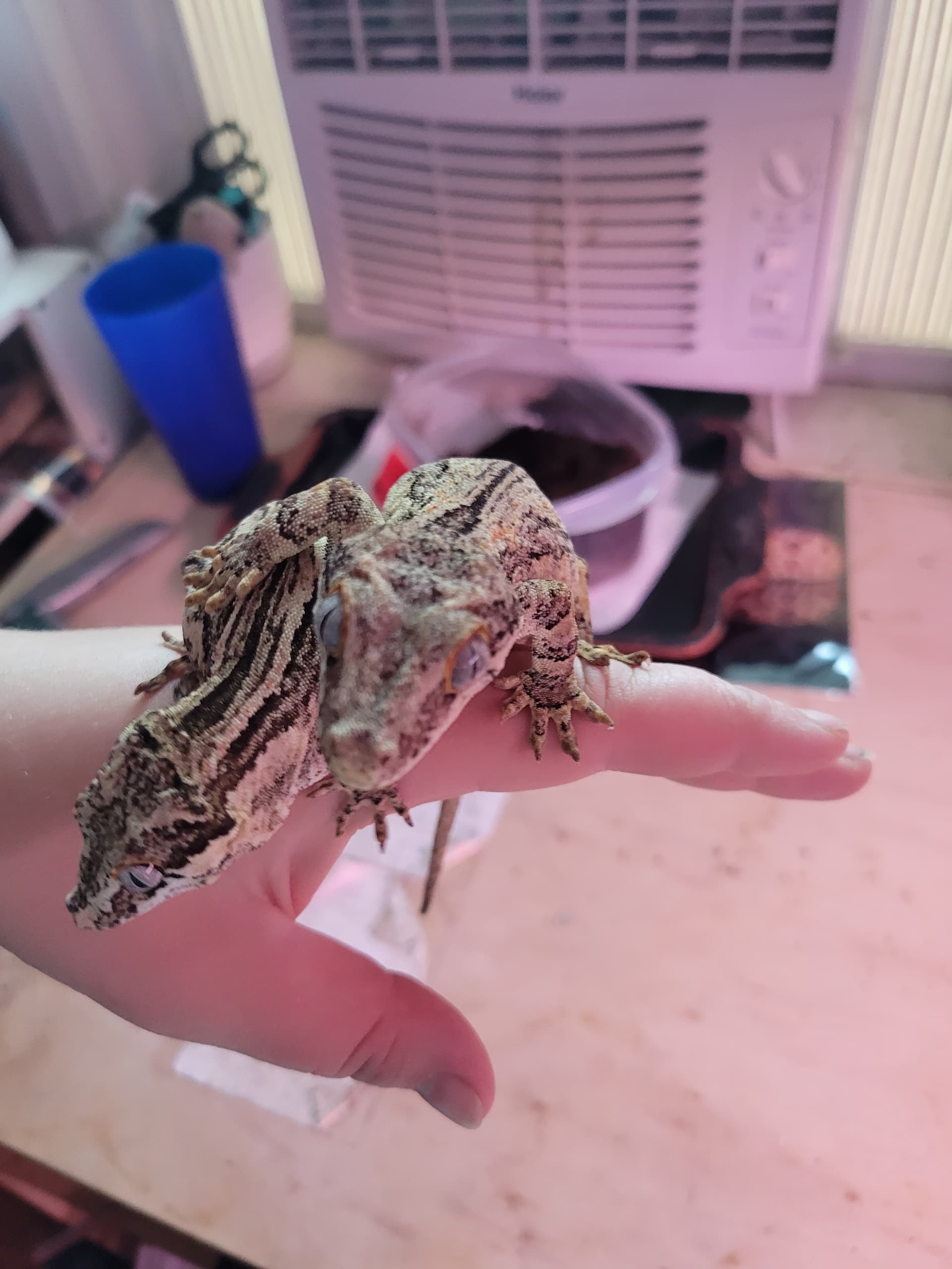 Tried to take mother daughter pictires of elyzium and irish coffee… jumpy gecks are jumpy. No they dont live together, they have their own bins, i just wanted to take size comparison shots. They didnt turn out great. Irish looks as big as her mom in some of these and shes not yet.