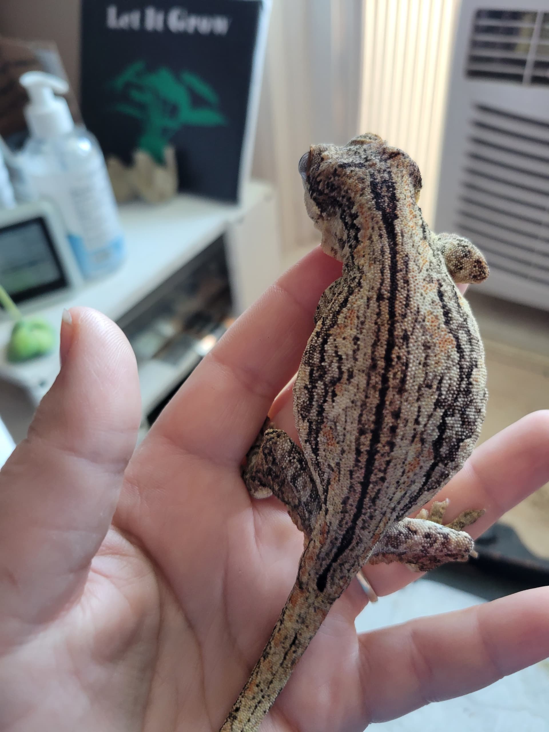 She’s my only gecko who will do that. I have a few cresties that will chill as well, but not as much as she does! And I don’t have any gargoyle’s that will do that either!