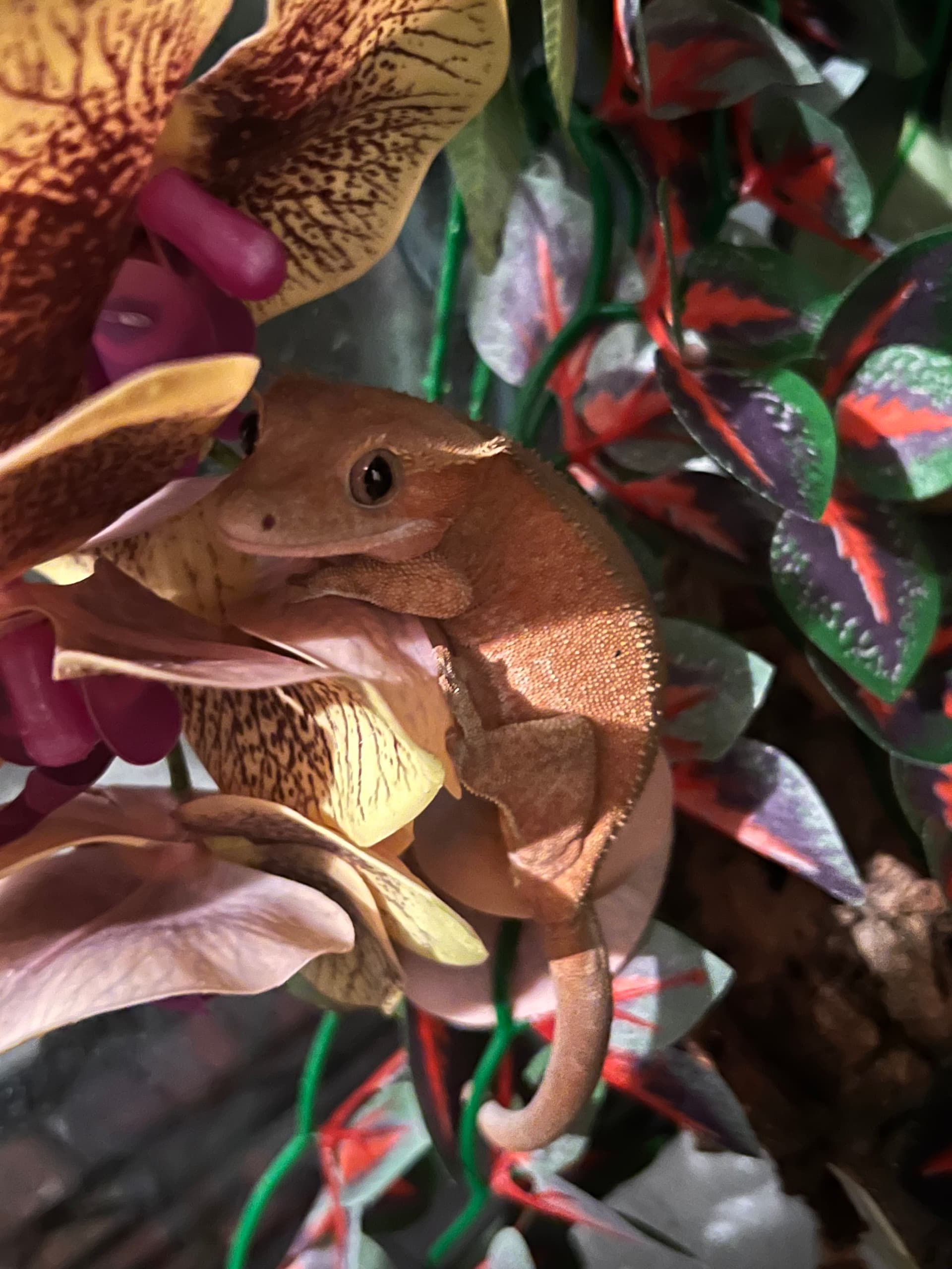@mblaney she absolutely adores my husband. He’s arranged her enclosure so she has a reptavines staircase to get out of the tank. Now, every night she’s waiting at the top to be let out. When she knows she’s being ignored, she’s started to climb the ceiling. I’ll have to grab a picture, but I’m so glad she’s enjoying it because I have a hard time reaching down and grabbing. Too many tremors/ grip speed to do so easily. She came out and traveled downstairs with me to get worms, and ended up exploring some houseplants. Definitely need to do a cage redesign/get more enrichment.