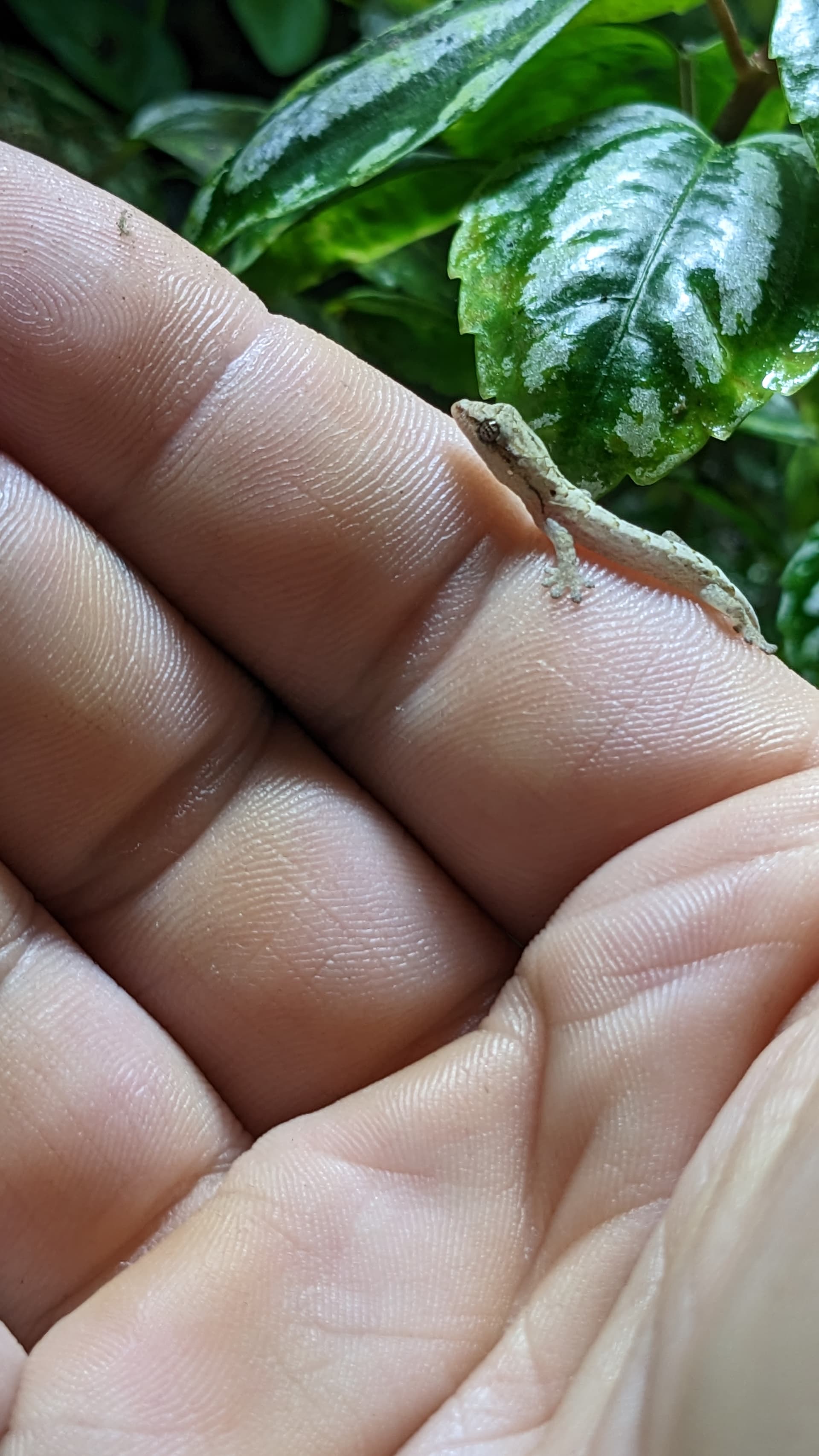 After many years, my Sphaerodactylus nigropunctatus granti finally started producing last year. I posted this picture of pops a while back. His initial offspring are finally maturing, and I have my very first sub-adult - a male! Here he is being released into his new permanent viv: