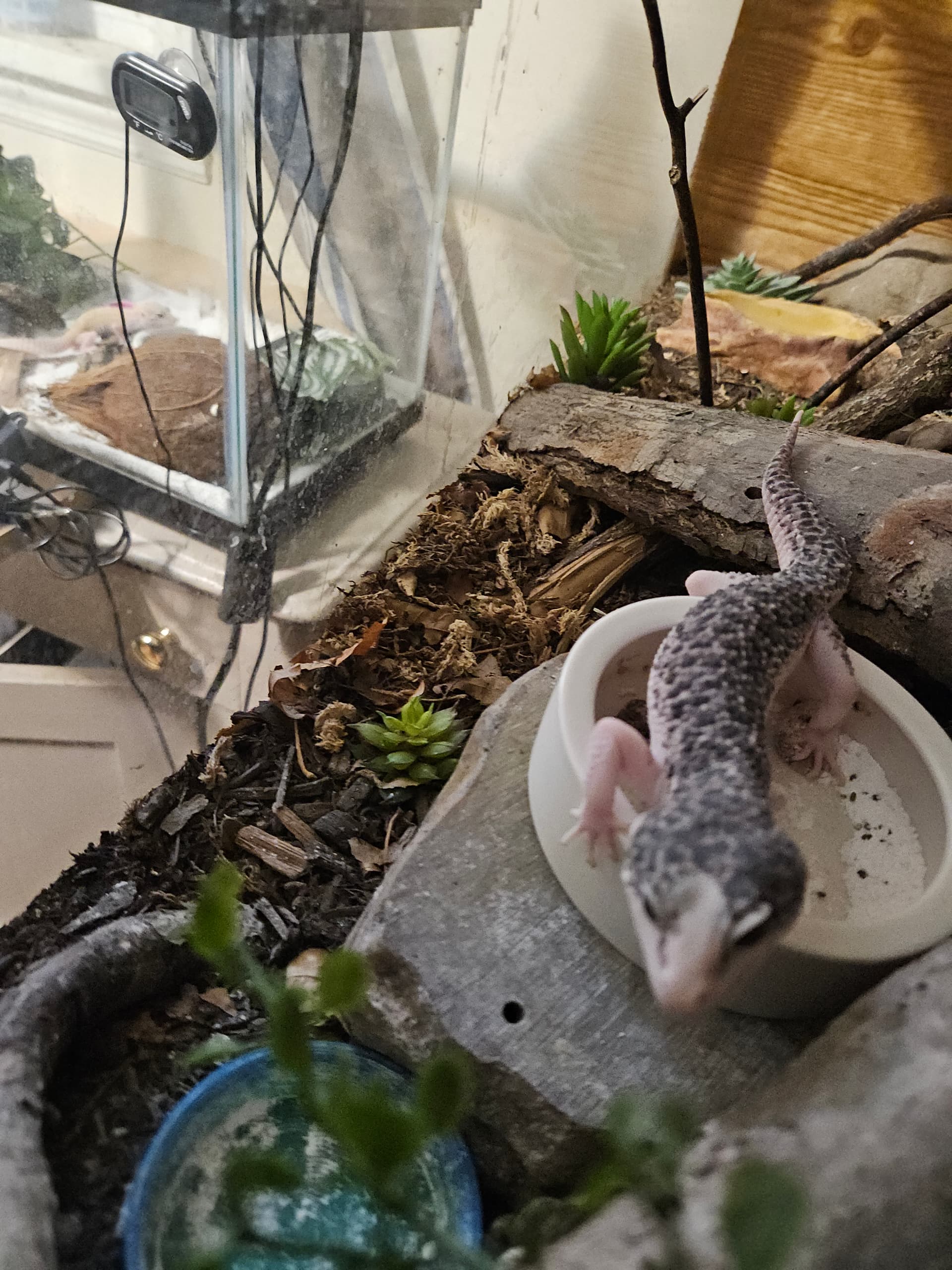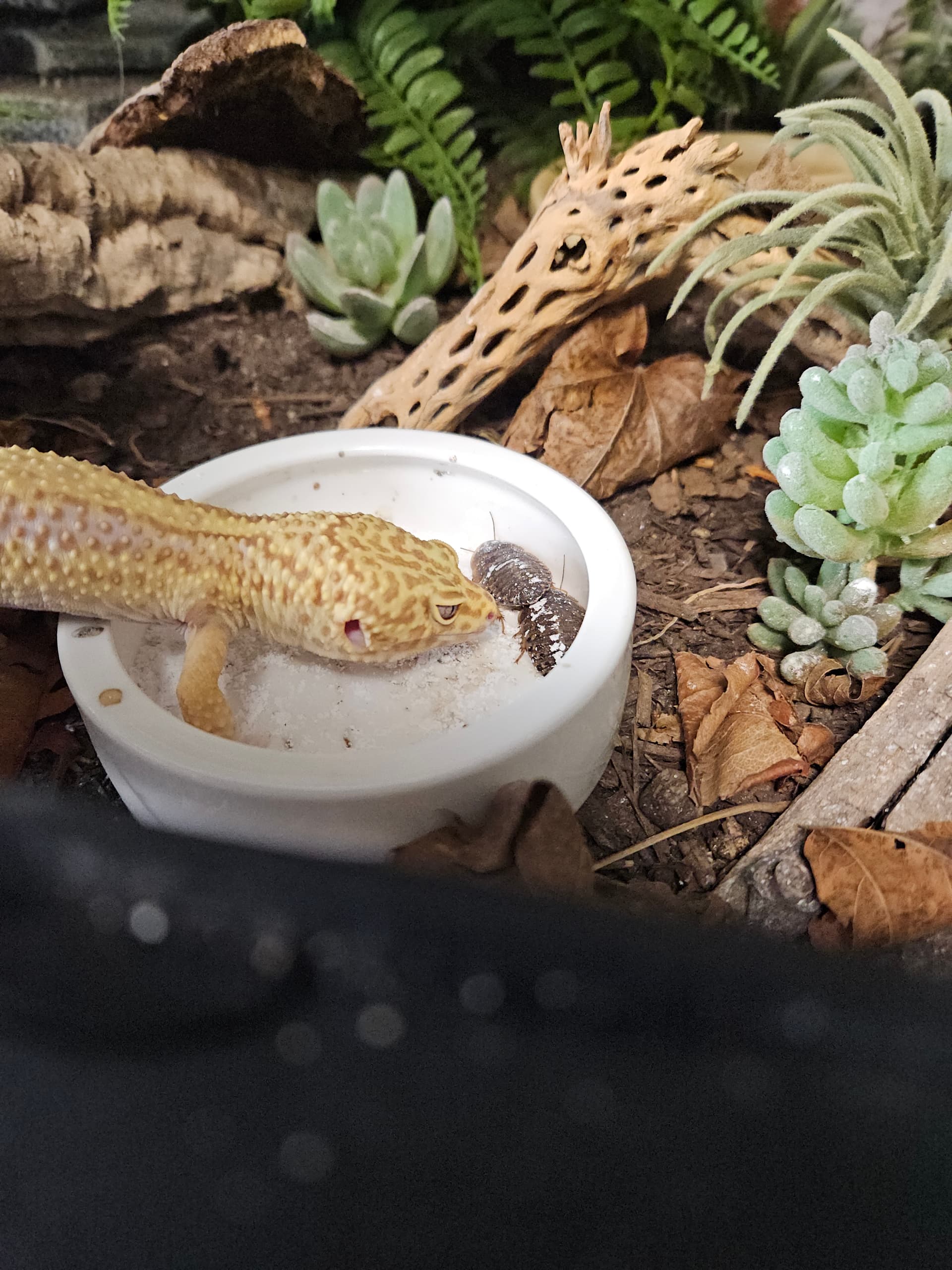 He acts like a puppy for sure. Ive heard that super snow eclipses tend to be really chill “friendly” gecks. Hes certainly easier to habdle than my raptor