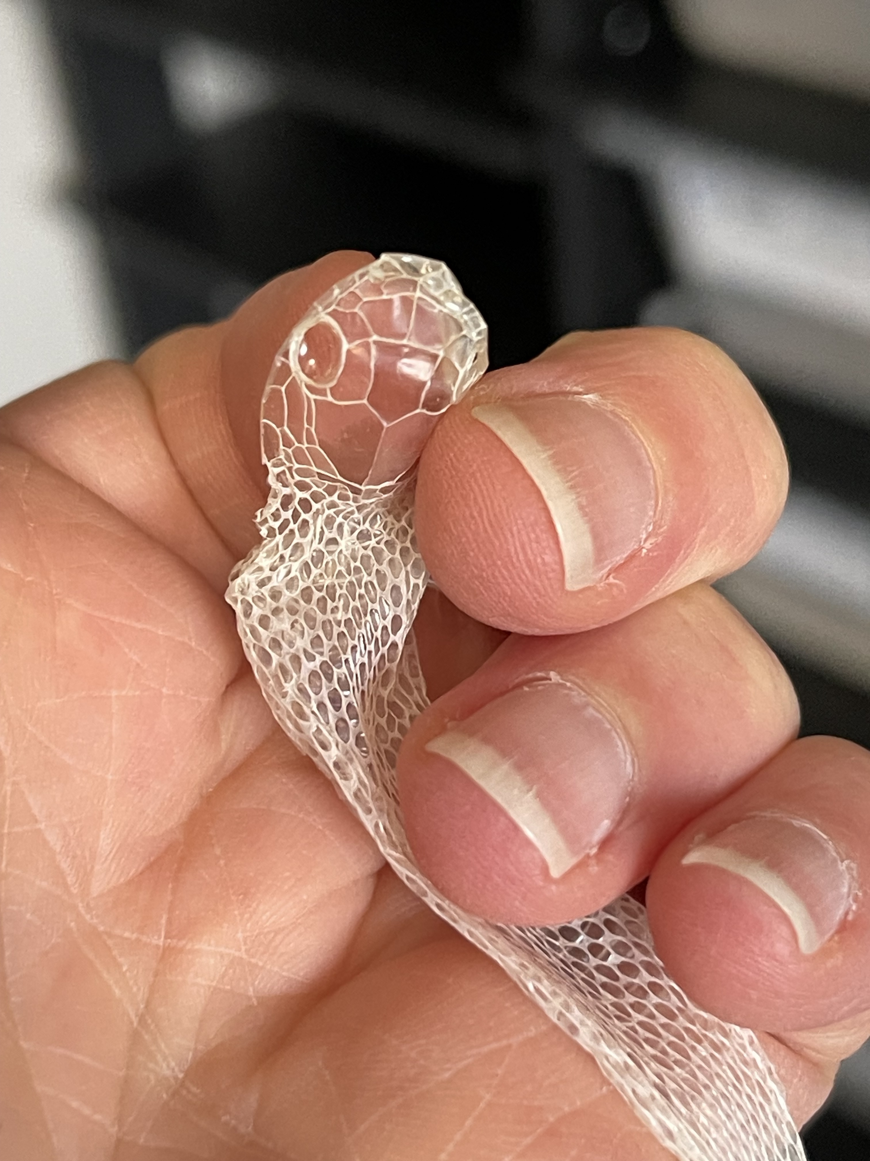 Oh, I wanted to send this photo of my Anery palmetto’s shed so you can see the low melanin: