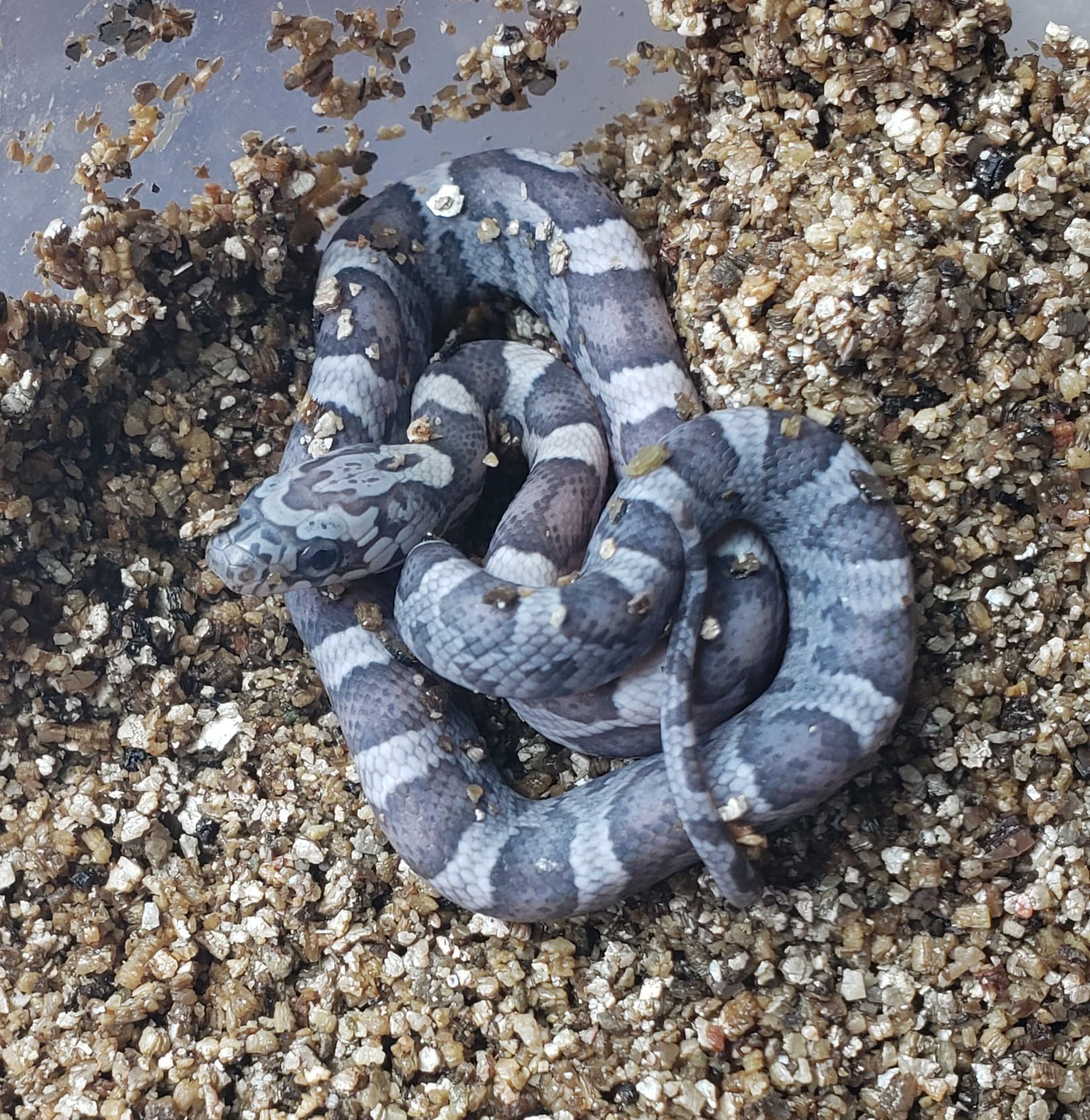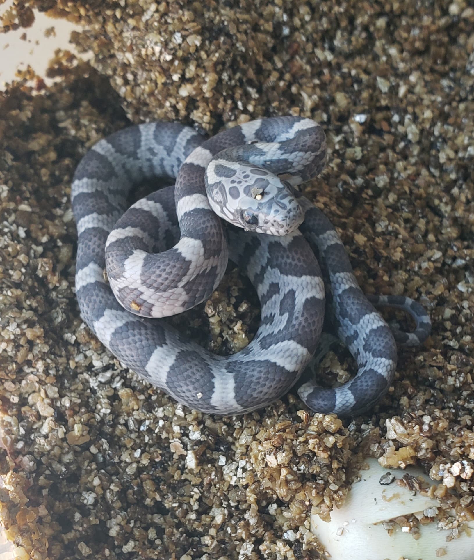 So, a couple of months ago, I accidentally did a very dumb thing. I had been moving some snakes into different enclosures and had forgotten that I put a female into one and then accidentally put a male into that one too. Thankfully the female was large enough to breed and laid her eggs without issue, but it’s not a pairing I would have intentionally chosen! I figured I wouldn’t bother posting about it, because it should be a clutch of all normals. The pairing is peppermint ph caramel x normal het sunkissed ph palmetto, ultra, (and he had one parent who was ph cinder and stripe). As I’ve been candling the eggs, I noticed the telltale sign of some of them being light morphs and some being dark. I thought maybe I hit the ph ultra odds and would get a clutch of normals and ultramels. But also the breeder who produced the male got some of the genetics incorrect on other snakes, so I also thought it was possible he was pos het ultra OR amel, even though that’s not what was listed.