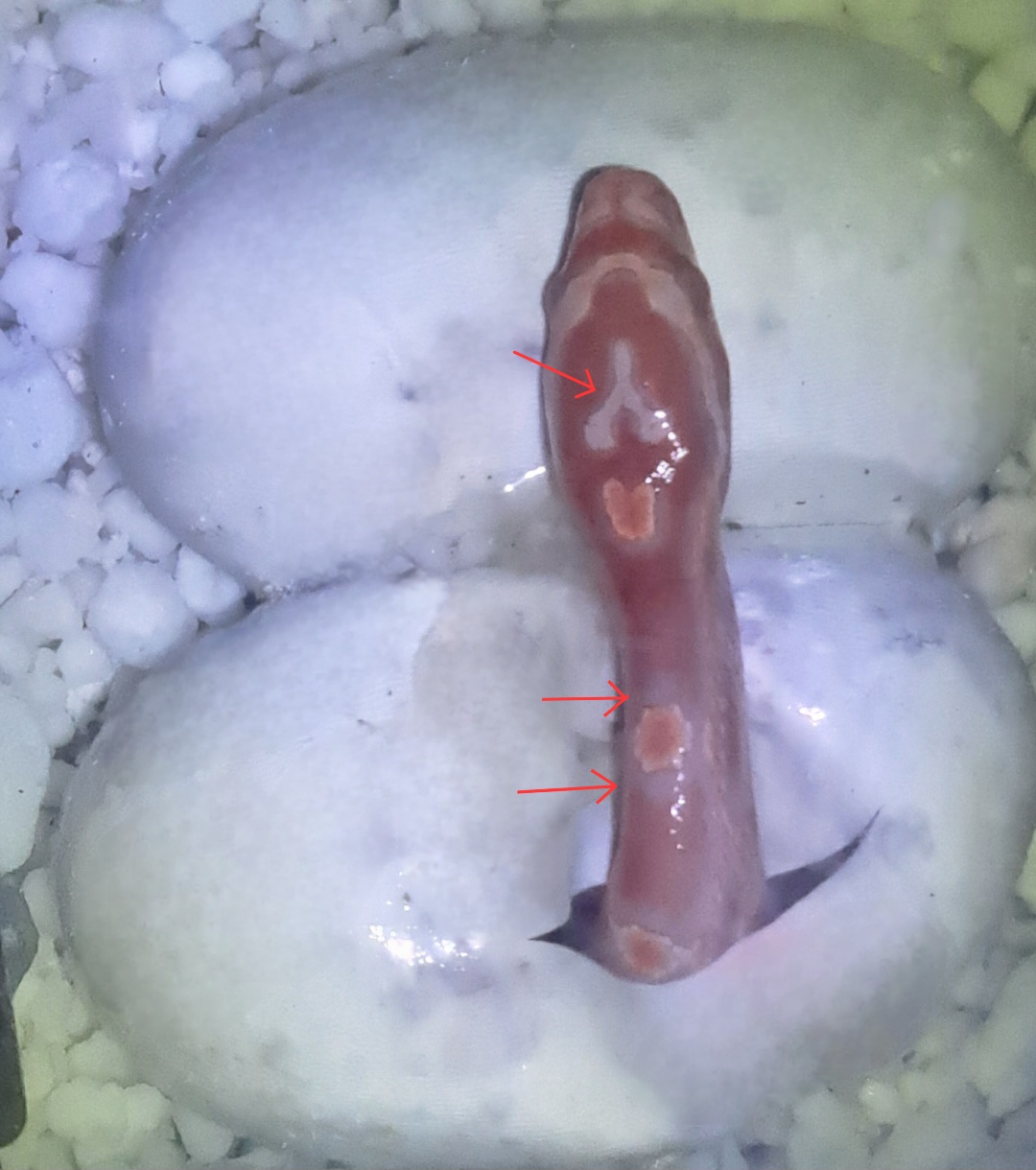 Candled them today and theyre all definitely good except for the 1 grape sized egg. Lots of everything you want to see when candling. Ive seen that before with my kings eggs when it takes a few days to see anything. Heres the poor girl a few hours after laying: