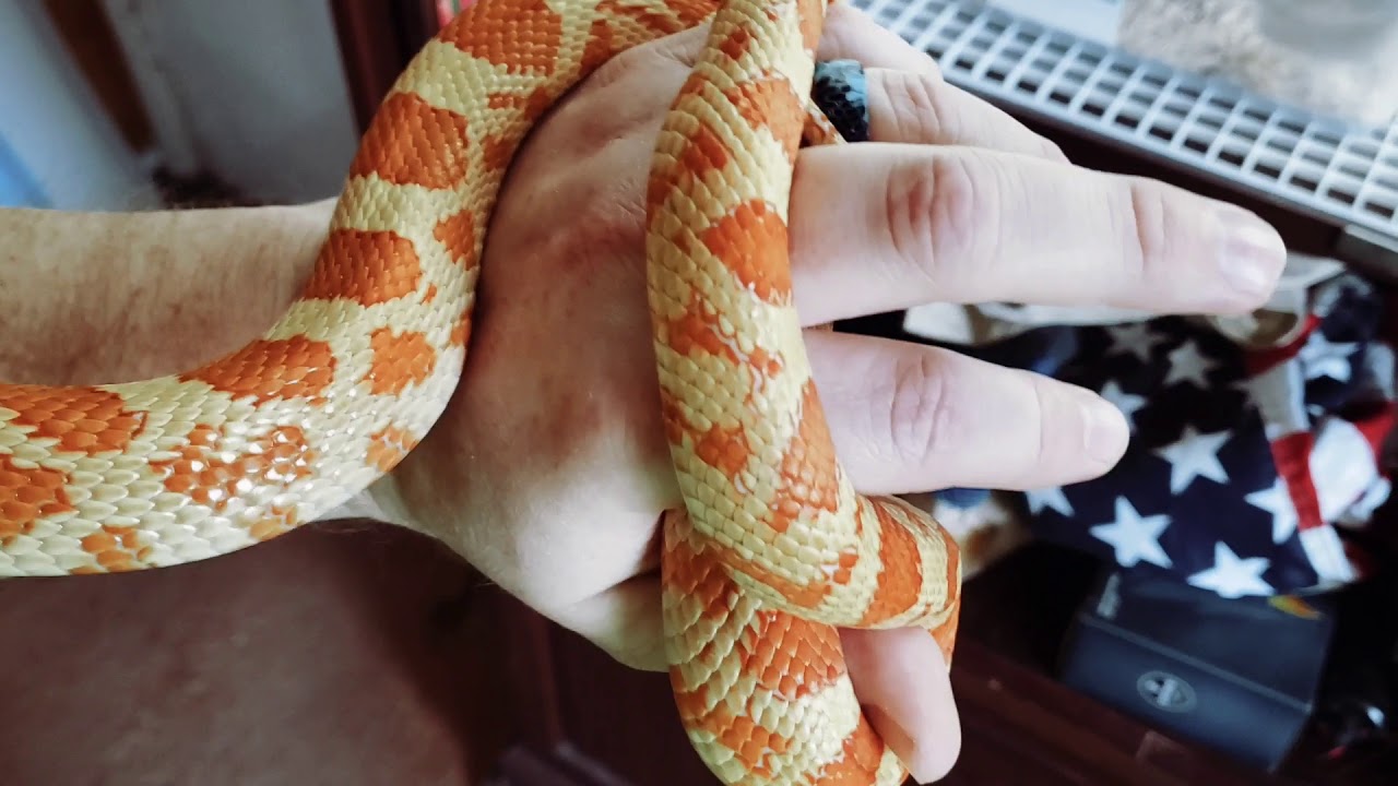 Also pushing in right at 36 inches today is Nova my favorite of the albinos. She’s also just starting to gloss over but not quite in blue yet. Should shed in the next 8-12 days.
