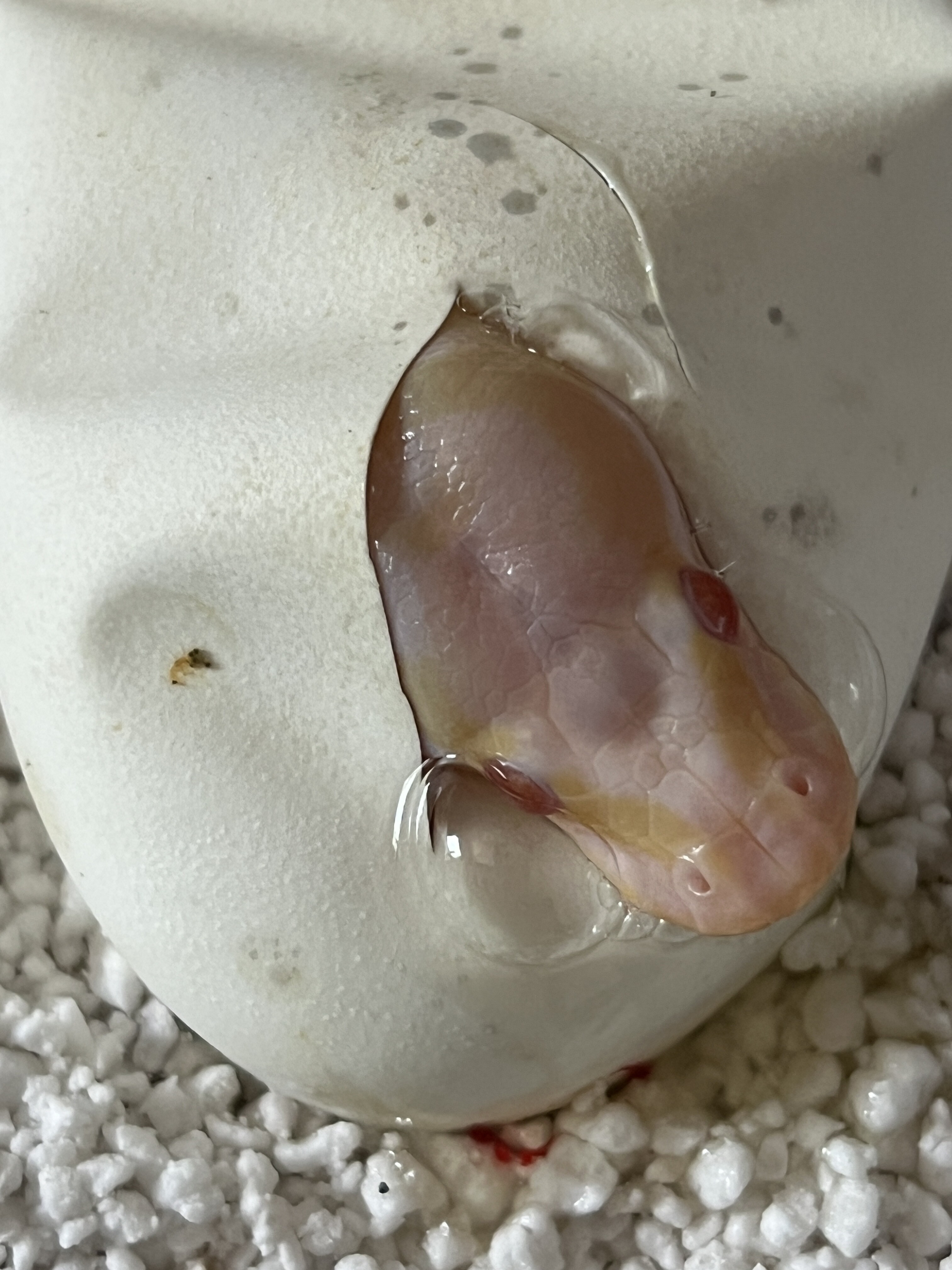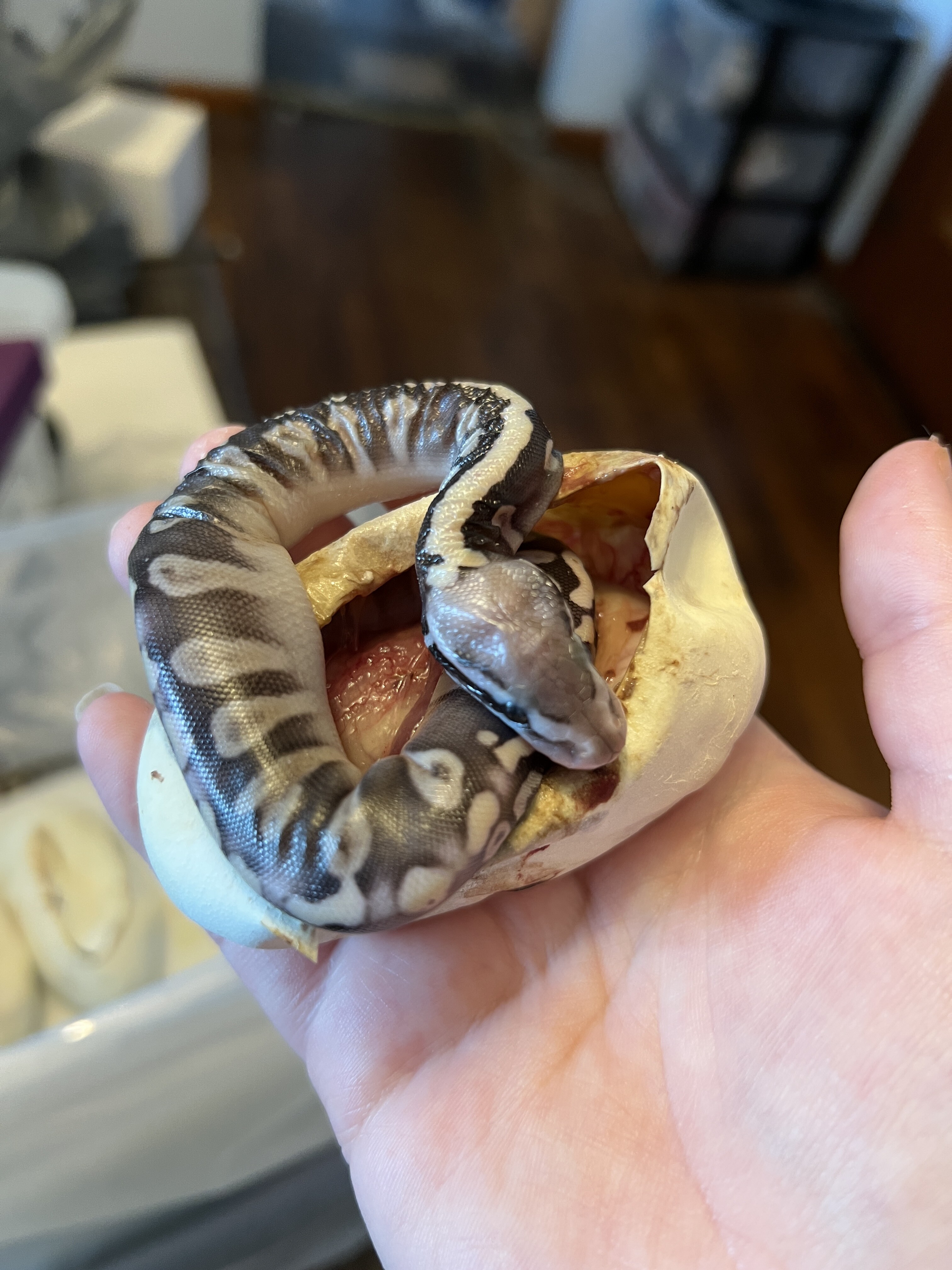 Pipped baby came out! It’s a boy, and I want to guess pastel mojave for his ID. Of course will wait until after shed for better pics and accurate IDs.