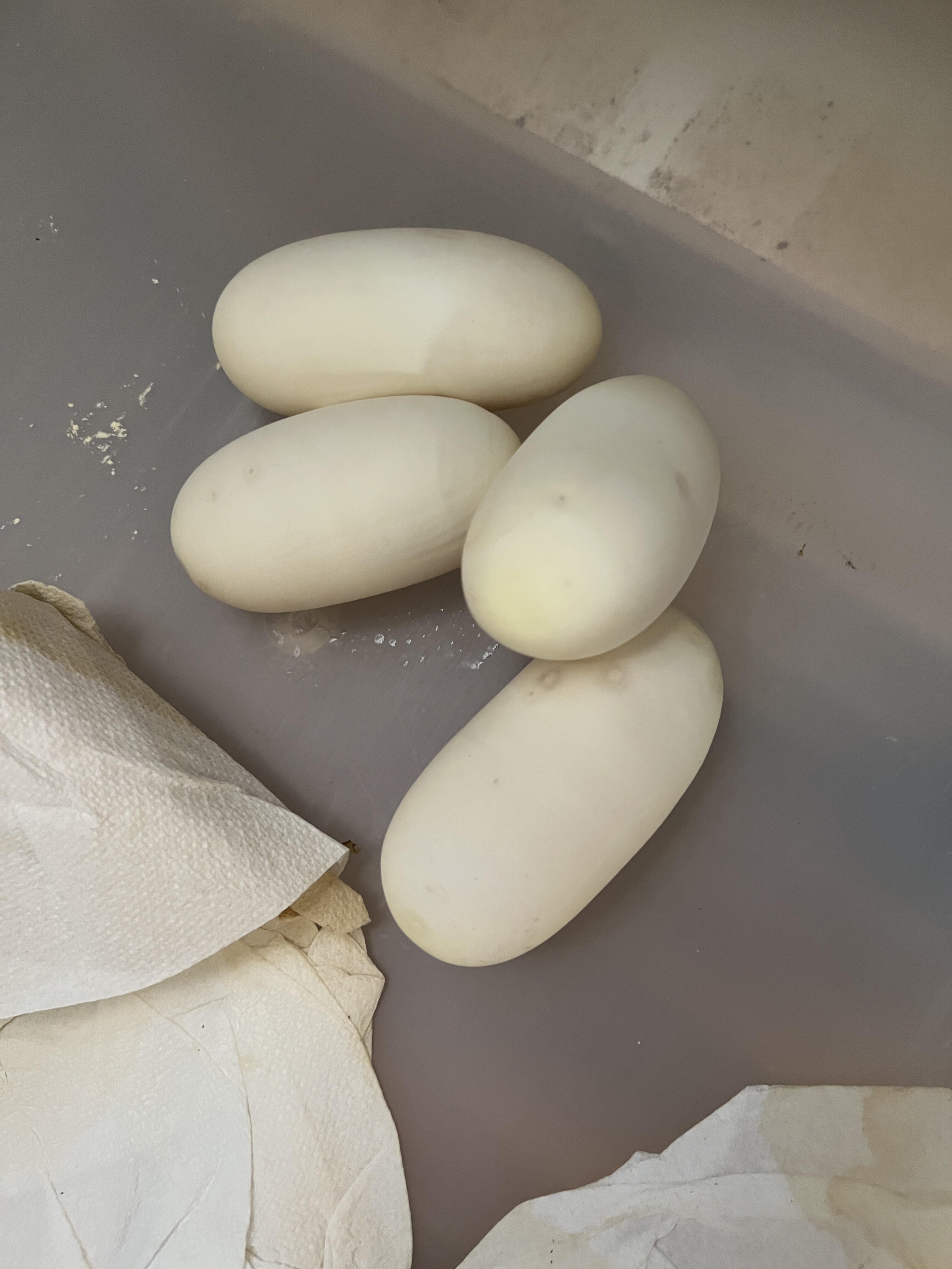 4 healthy eggs! Rather small clutch but they’re big eggs, around 110 grams per egg!