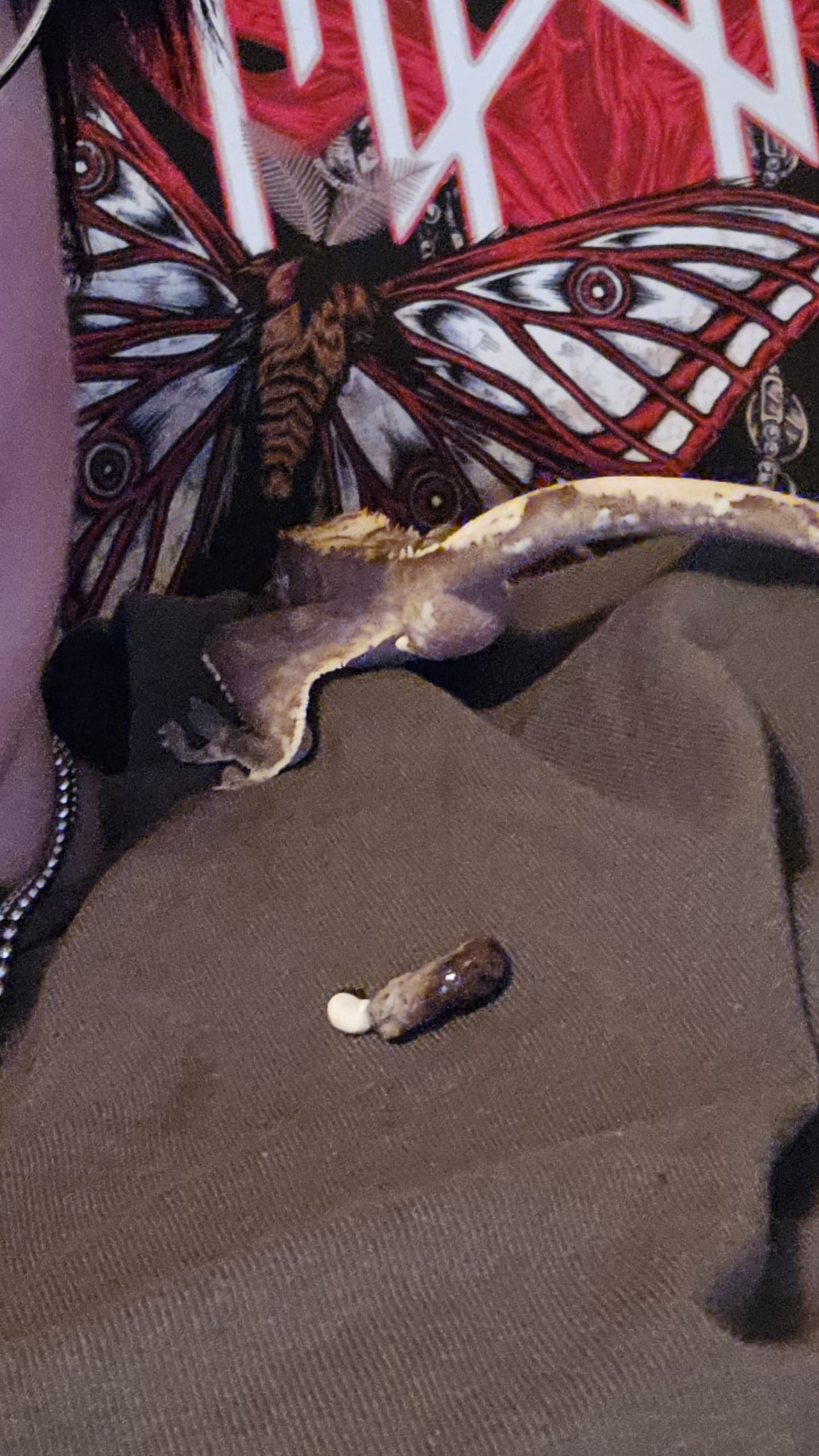 My crested gecko, pumpkin, hadnt been eating (that i could see), for a while. He usually uses the bathroom when I handle him, so i thought id try. Ive been avoiding handling him since the original post