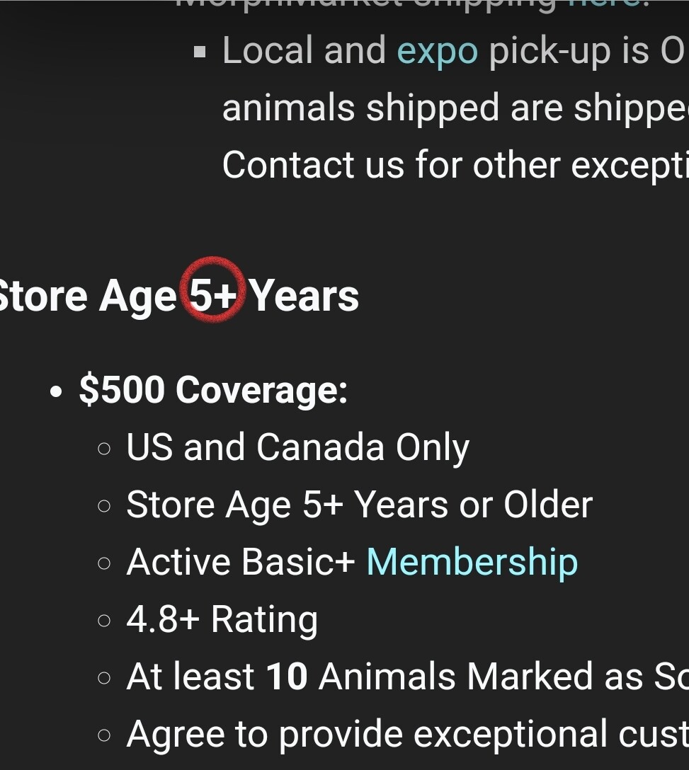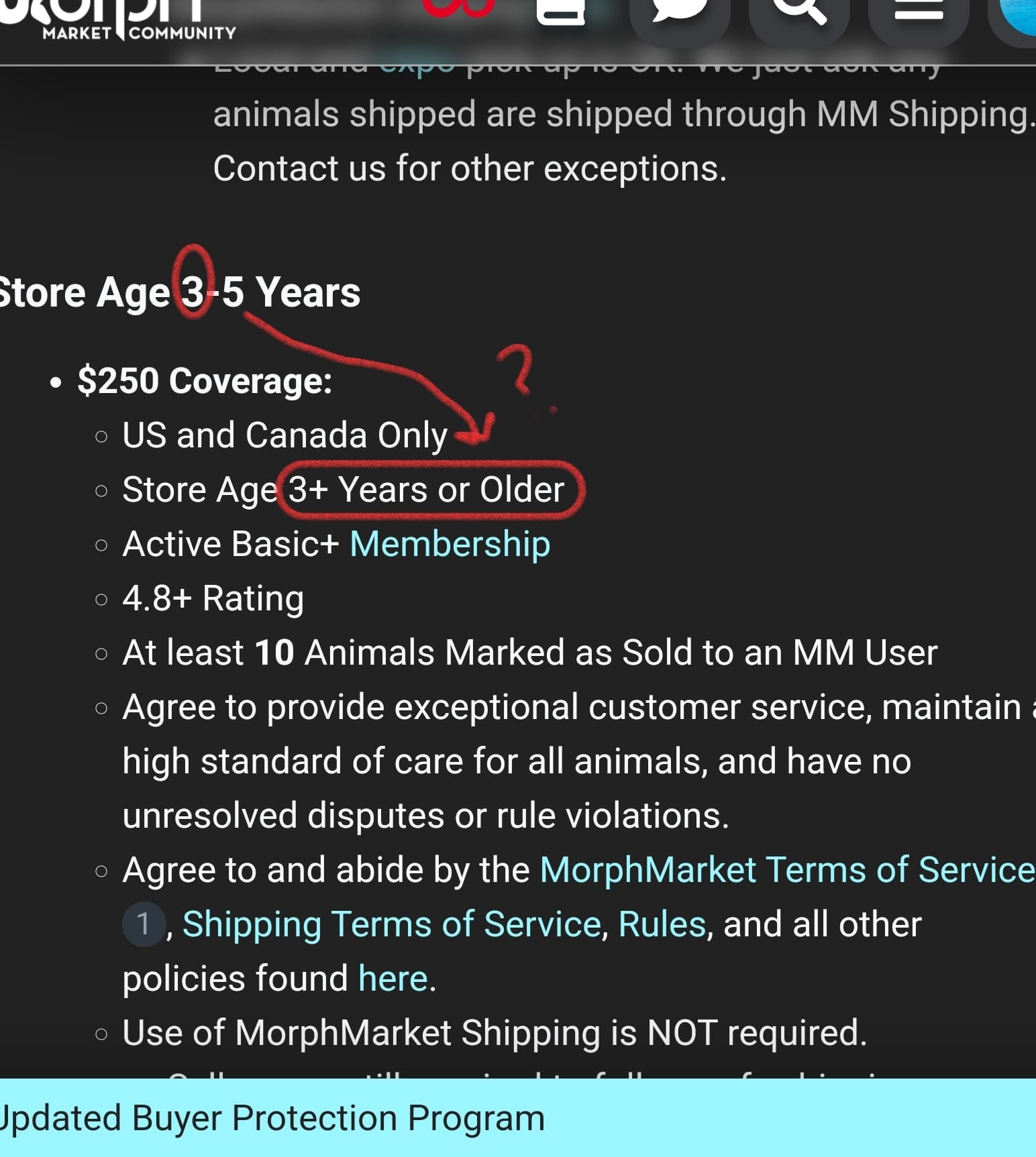 - Sellers who do not satisfactorily resolve a situation, as determined by MorphMarket, risk being removed from MorphMarket, whether they are part of this program or not.