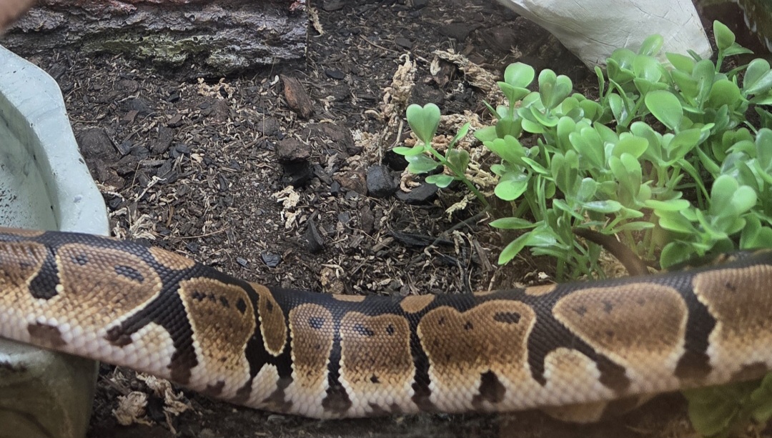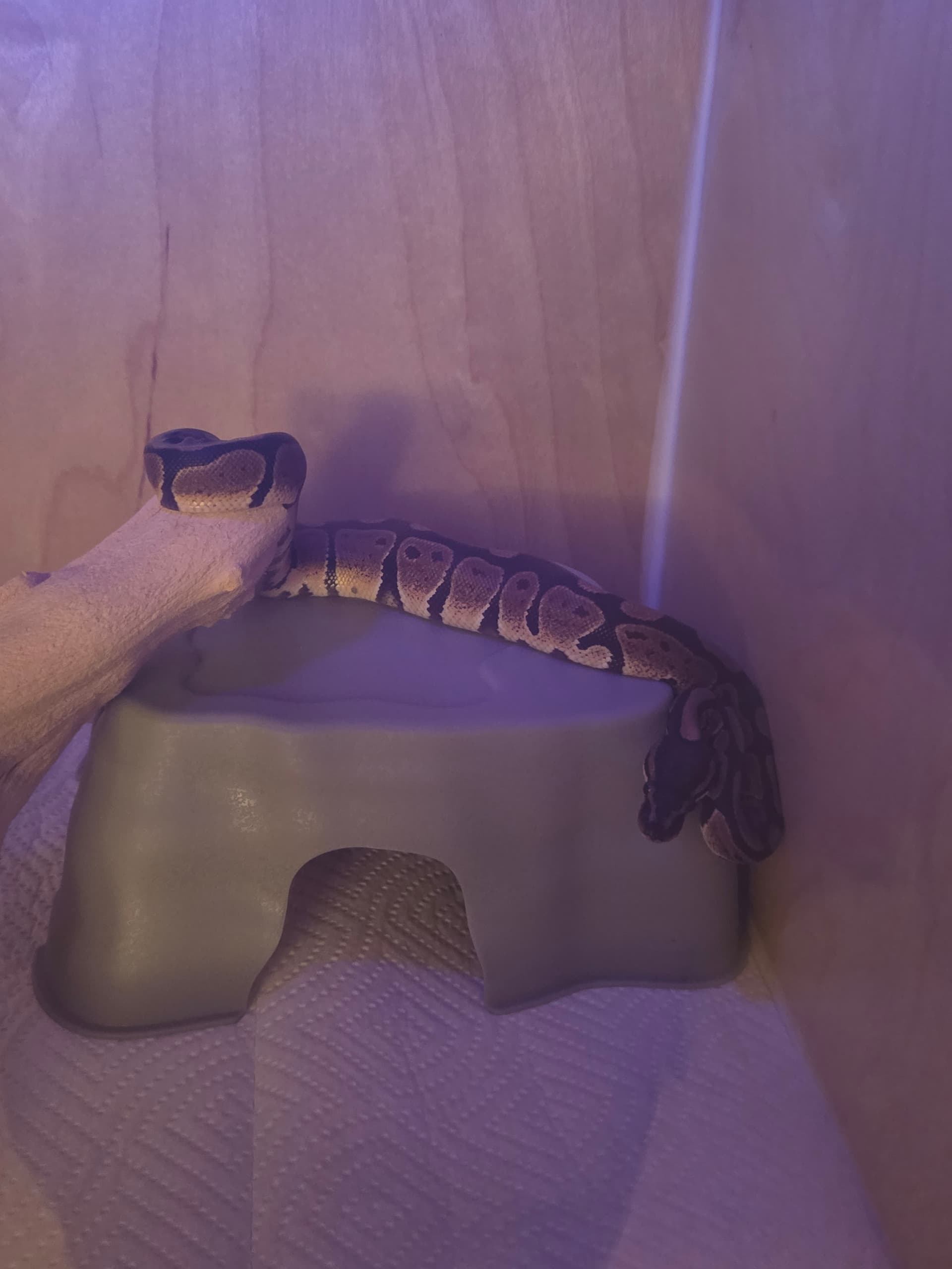 Hello, I recently adopted a ball python (they are in quarantine at the moment) but was wondering if I could have help figuring out the morph. Once they have their first shed I will be getting the genetics tested! This is Tofu!
